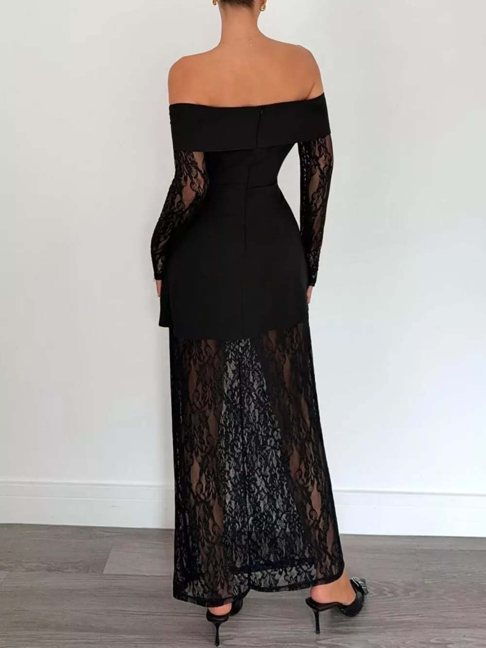 Off-Shoulder Lace Long Sleeve Maxi Dress
