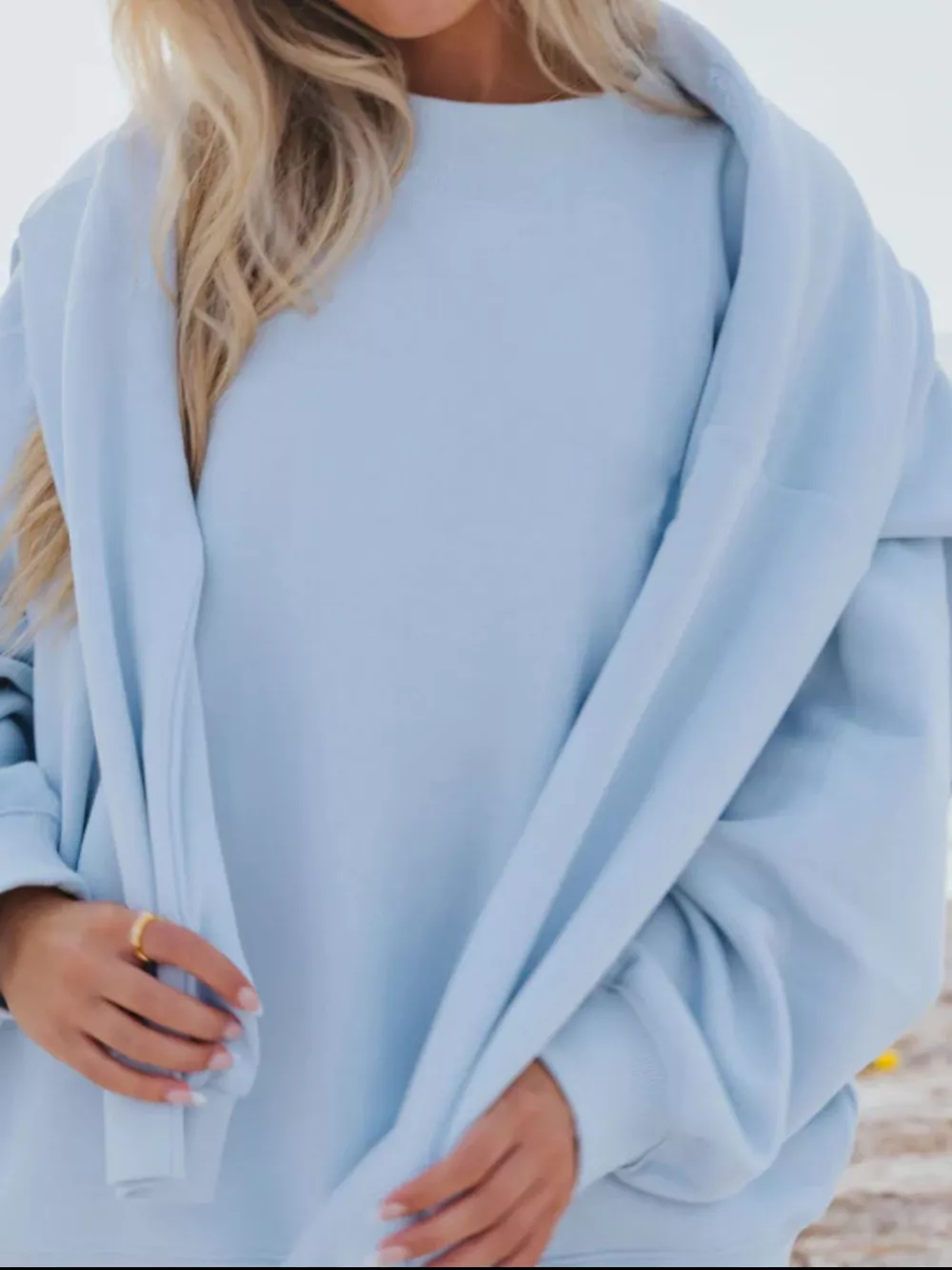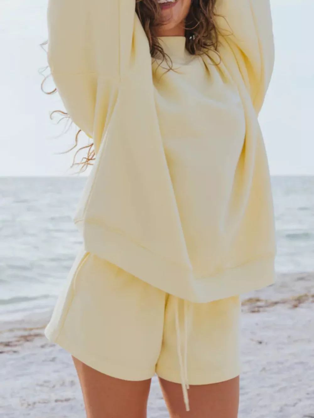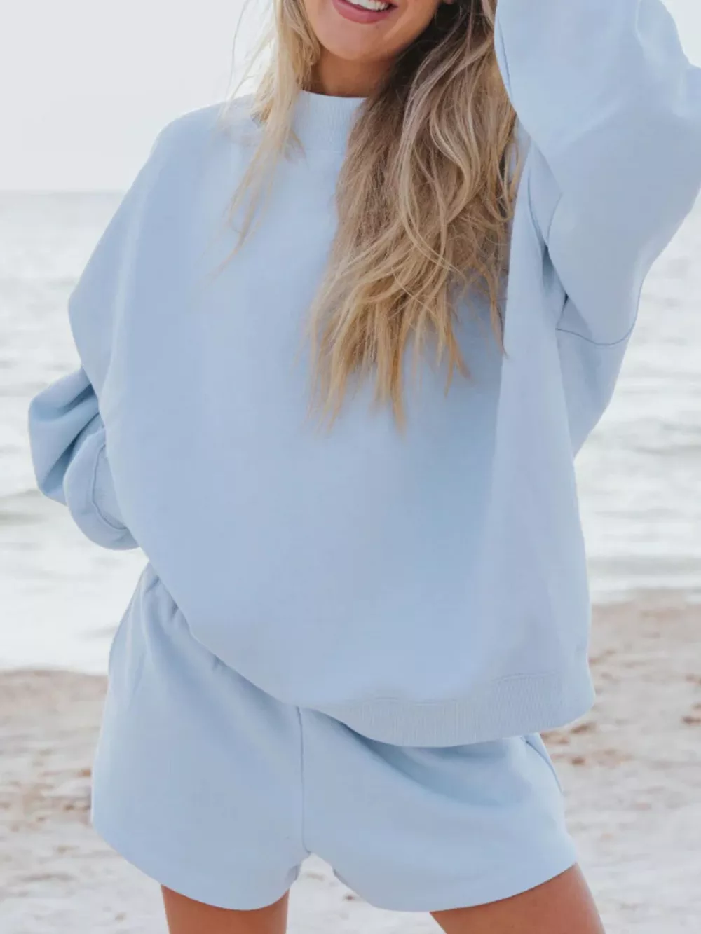 Relaxed Fit Round Neck Sweatshirt and Shorts Set