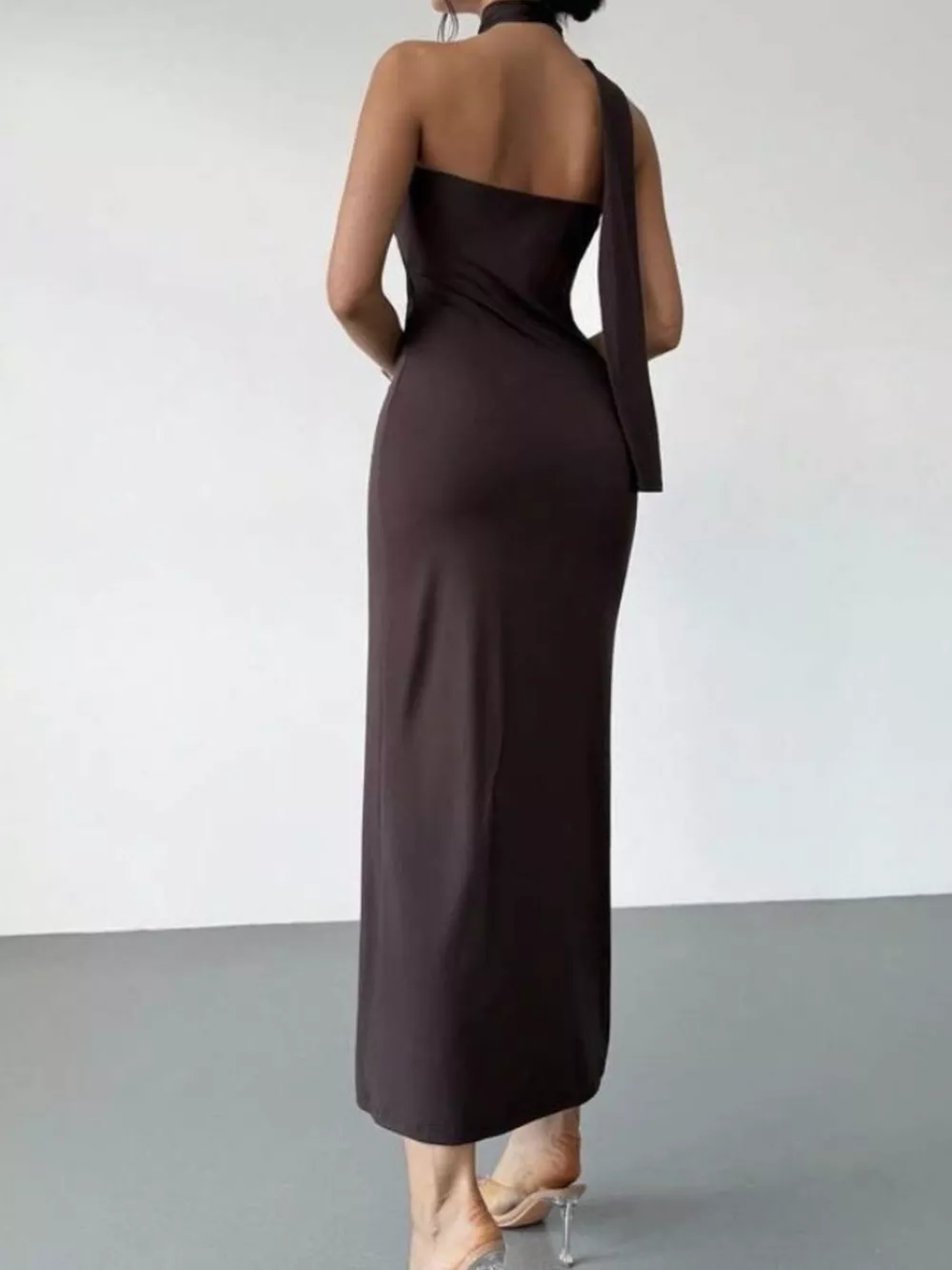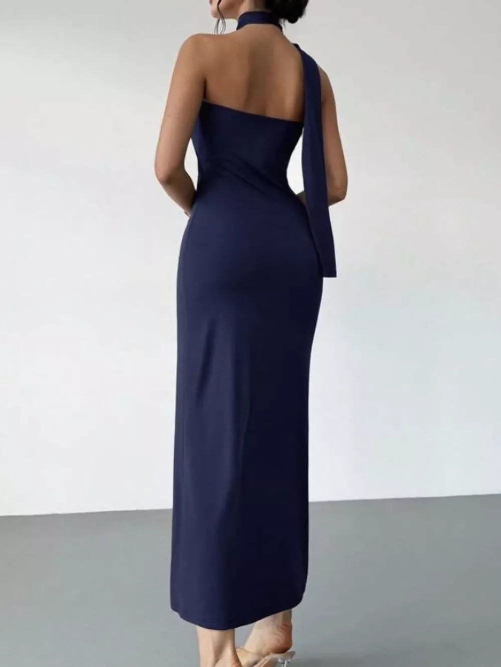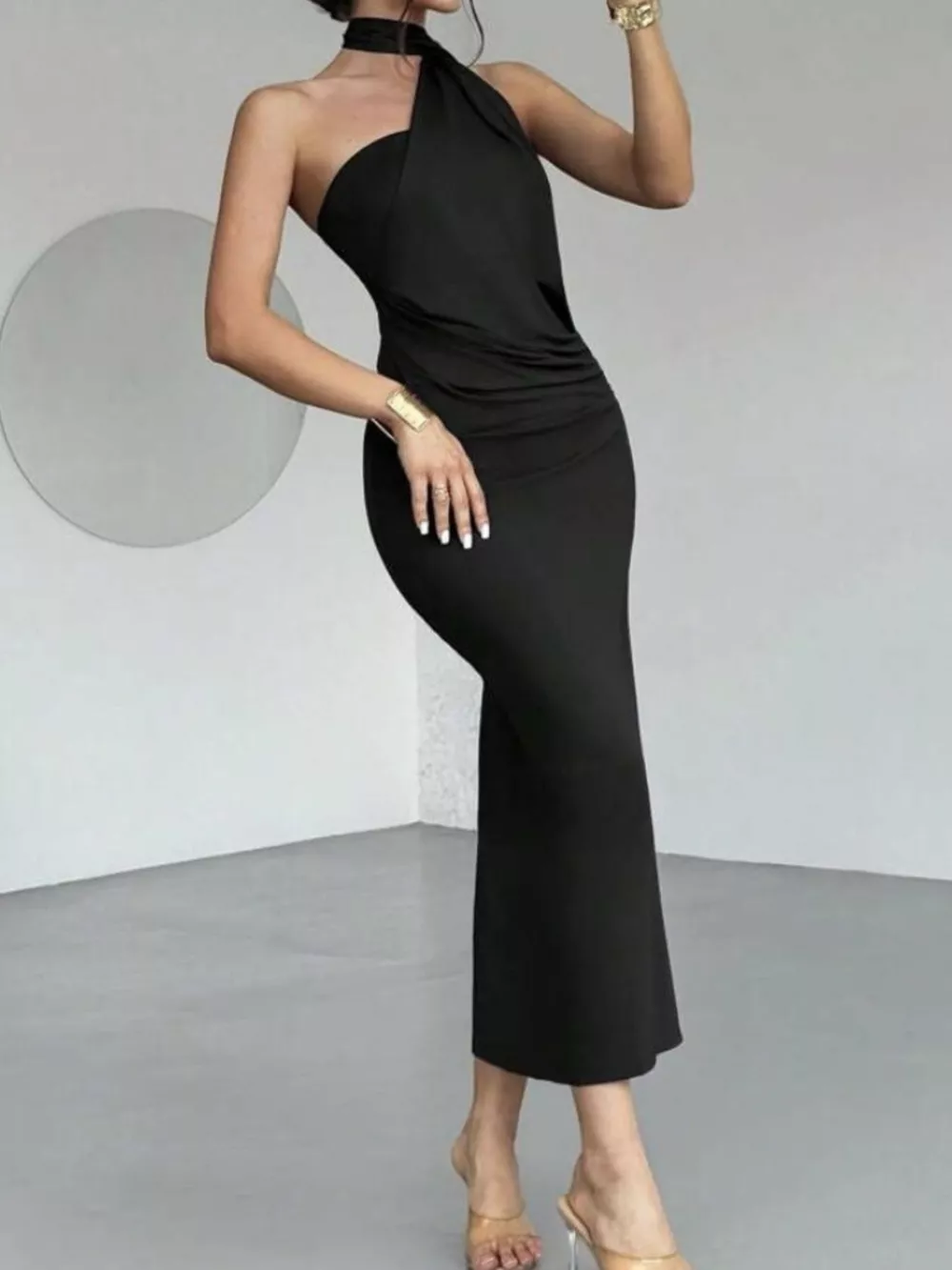 Halter Neck Ruched Bodycon Midi Dress