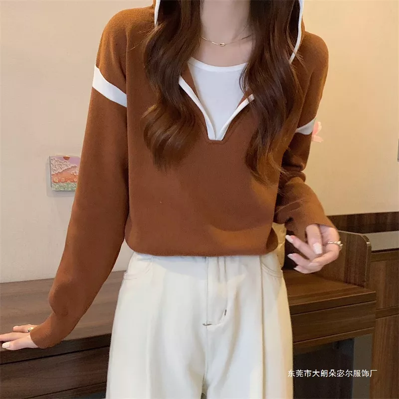 Contrast Trim Hooded Sweater
