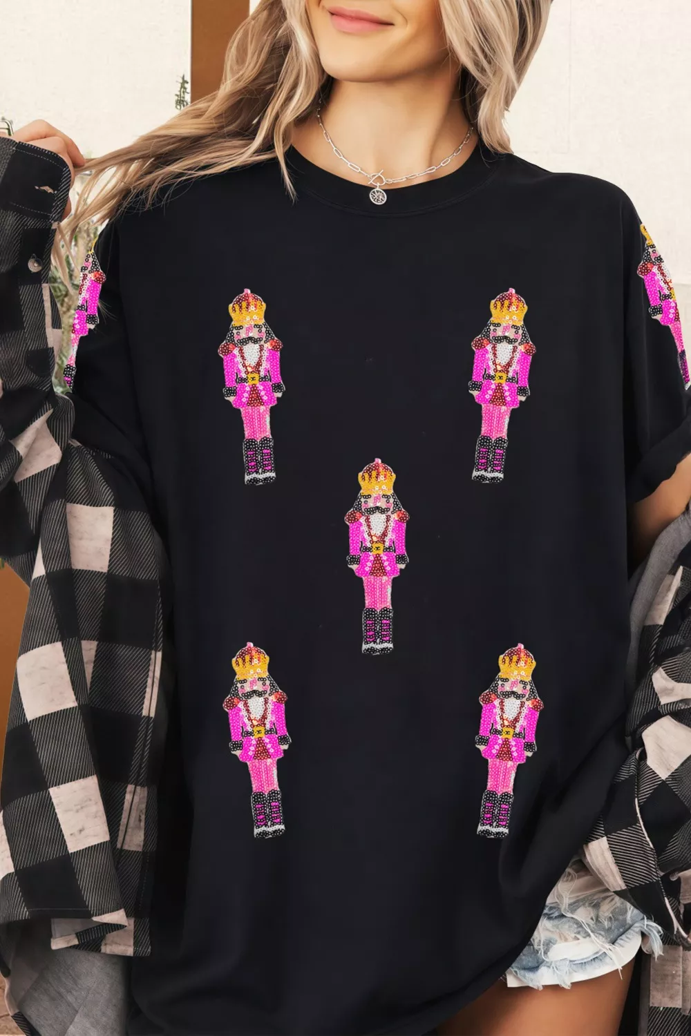 Sequin Patched Christmas Nutcracker Casual T Shirt