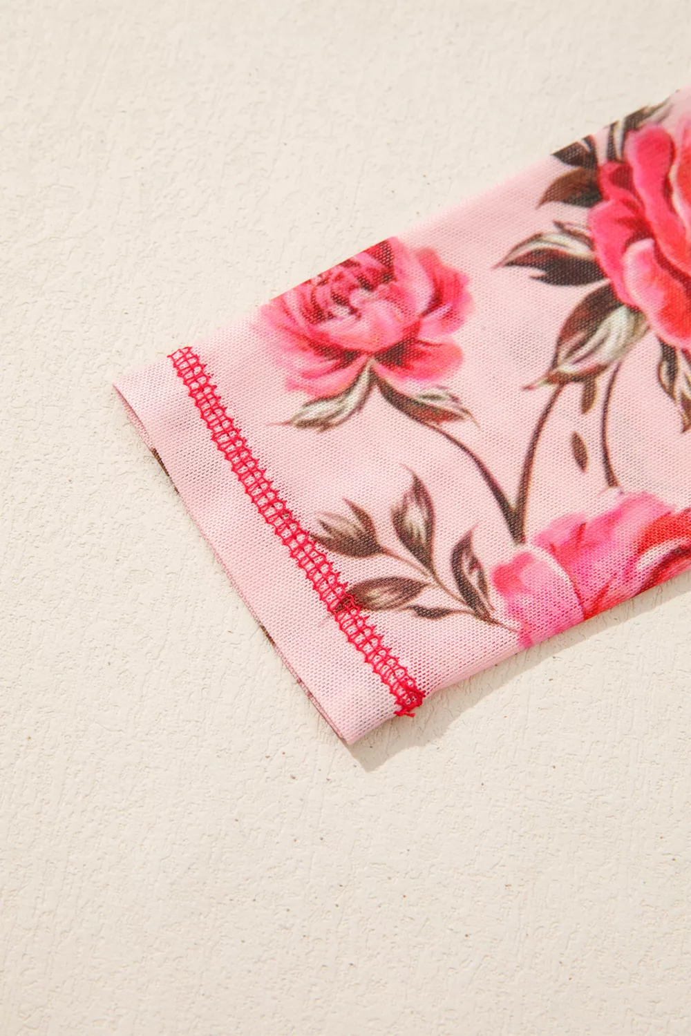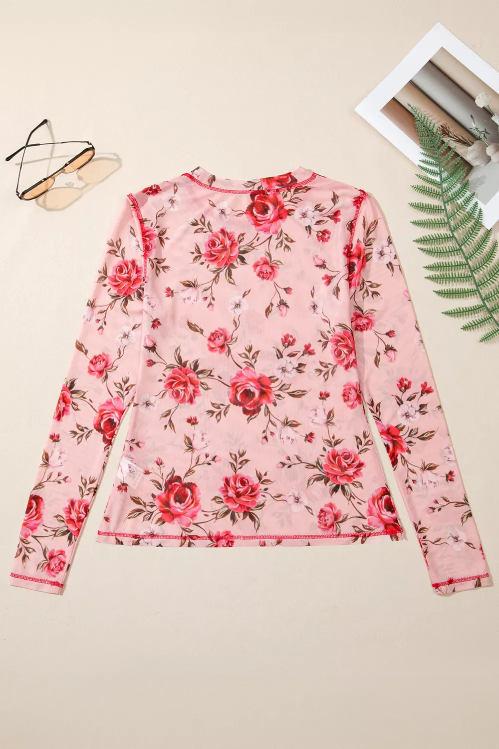 Floral Print Exposed Seam Detail Mesh Long Sleeve Top