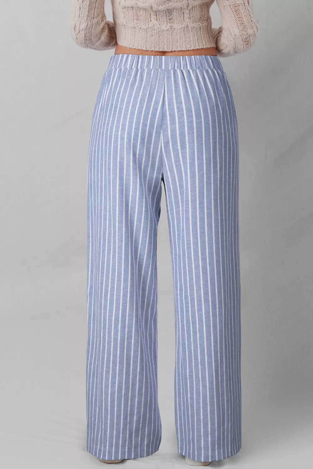 Stripe Buttoned Detail Loose Casual Pants