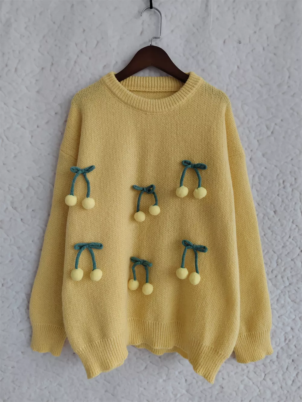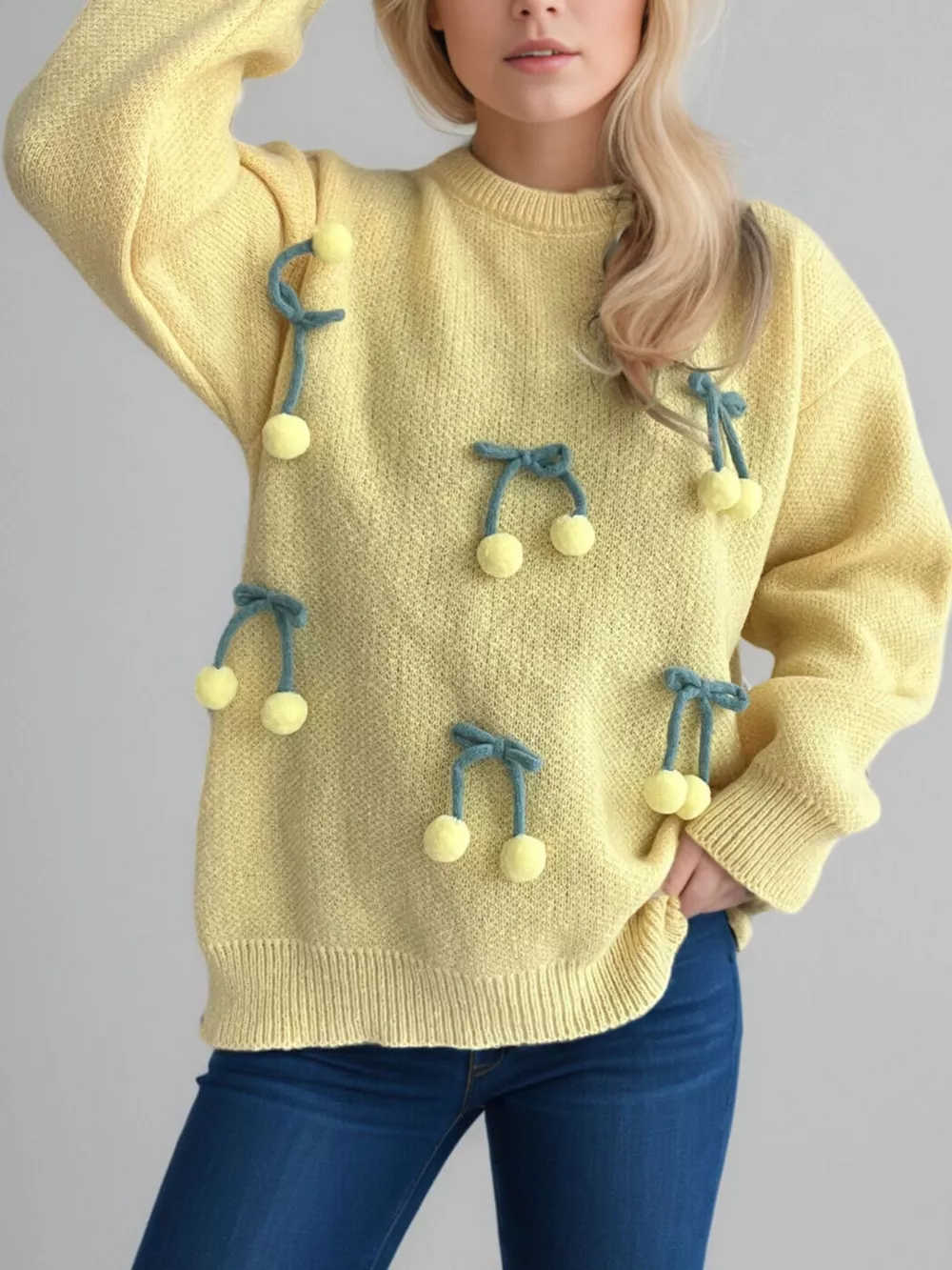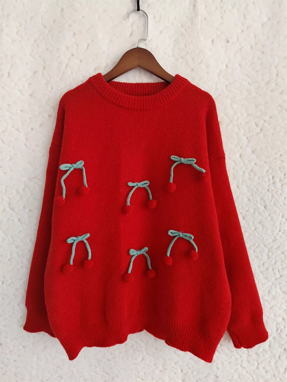 Cherry Pom-Pom Knit Round Neck Sweater