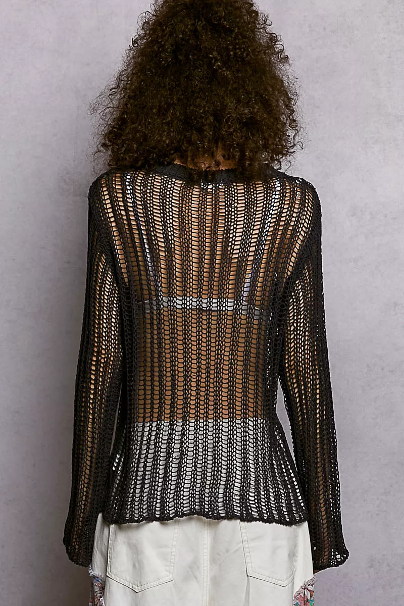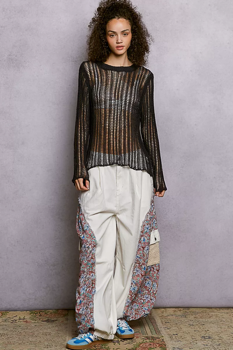 This round neck long sleeve sweater top is crafted in acrylic for a cozy feel. The relaxed fit offers a comfortable and flattering silhouette. The open-knit pattern adds texture and interest to the design. Perfect for layering or wearing on its own, this sweater top is versatile for various occasions. Stay stylish and warm with this fashionable addition to your wardrobe.