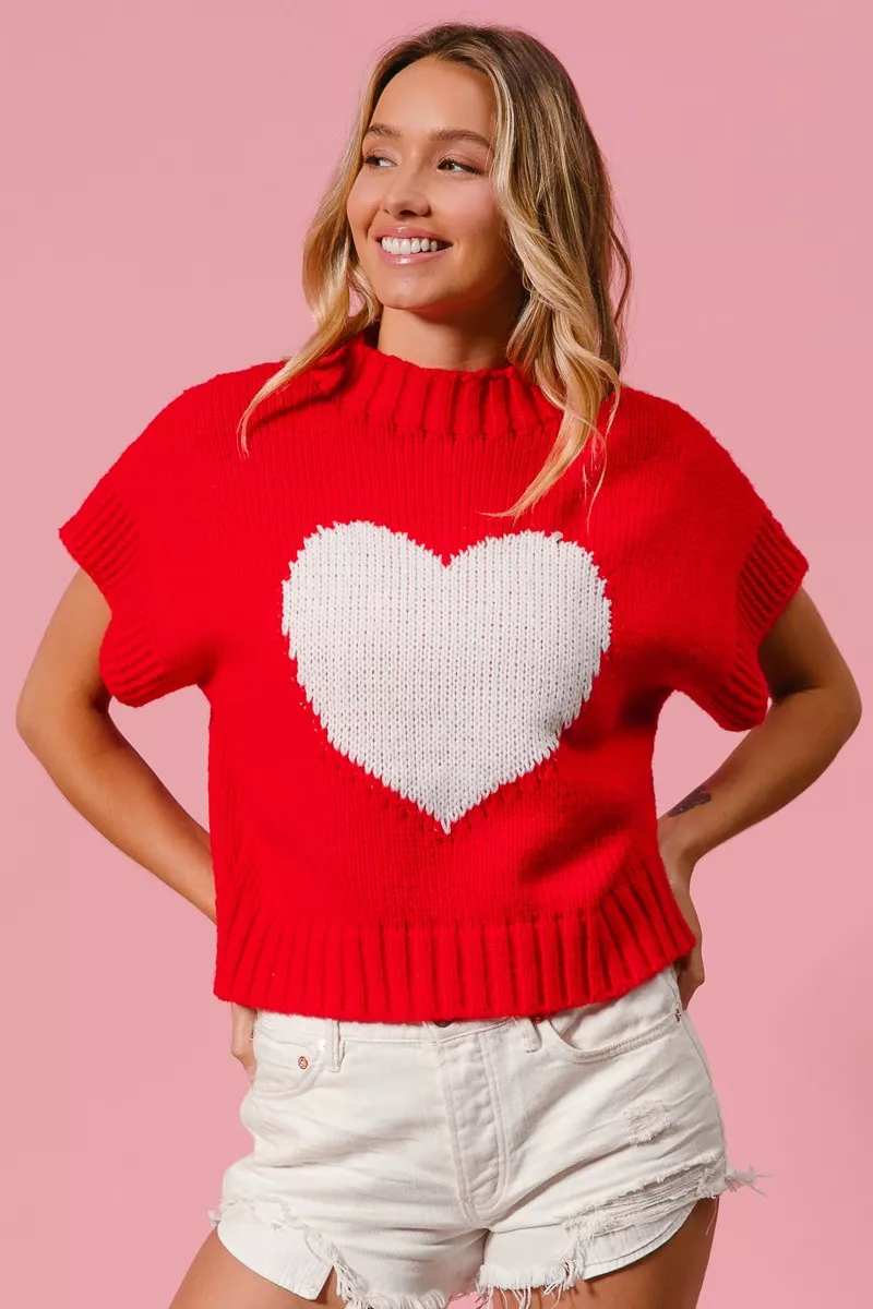 BiBi Rib Banded Heart Pattern Valentines Sweater
