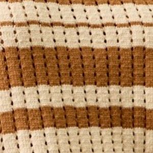 This striped open knit sweater top features a stylish front braided detail, adding a sophisticated touch to a classic design. The combination of stripes and braided accents creates a visually interesting and modern look that is perfect for versatile styling. The open knit construction gives this sweater top a light and breathable feel, making it a great choice for layering or wearing on its own. Embrace a chic and fashion-forward aesthetic with this striped sweater top that effortlessly combines comfort and style. Elevate your outfit with this trendy striped knit sweater top featuring a flattering front braided detail.