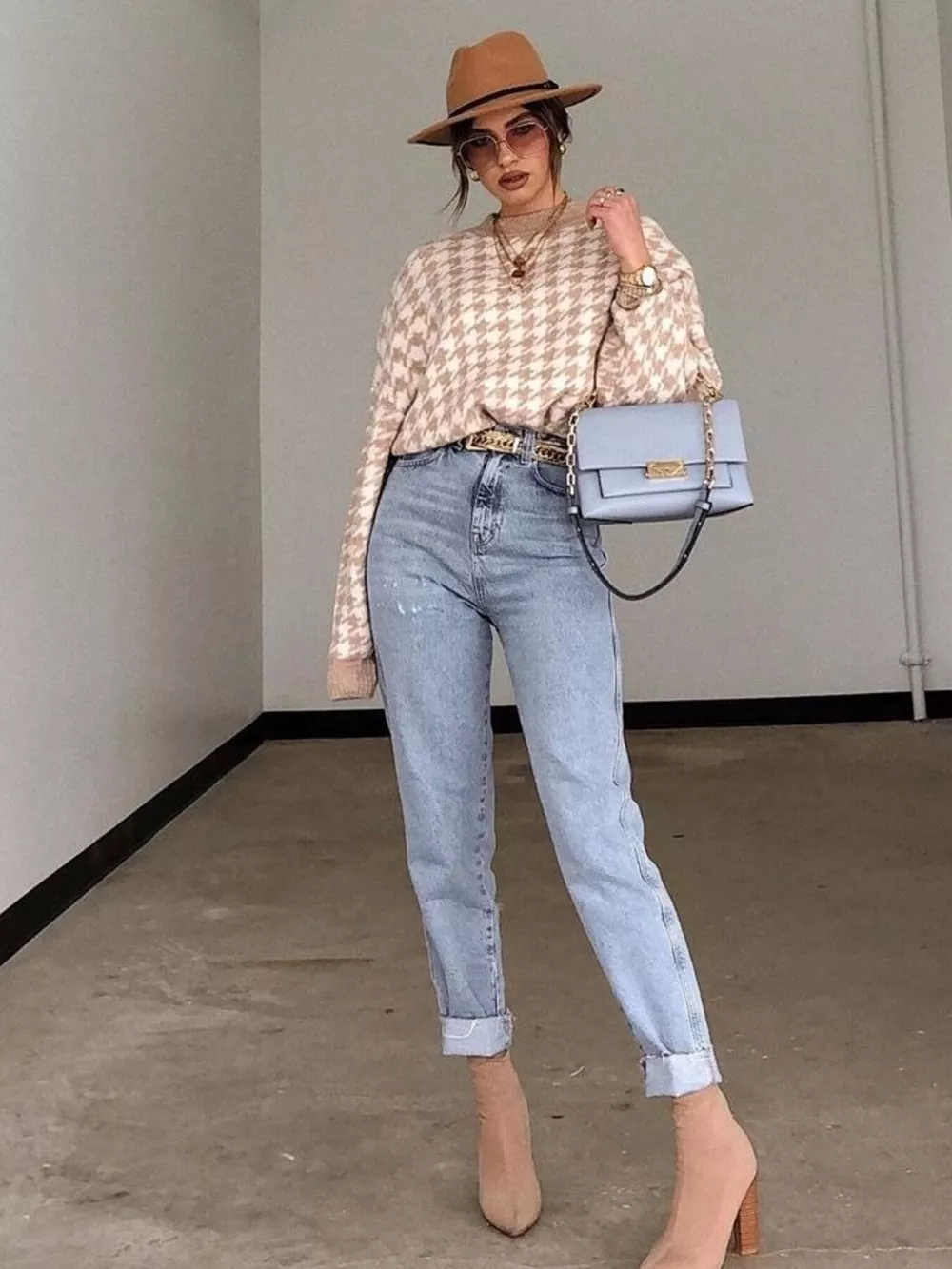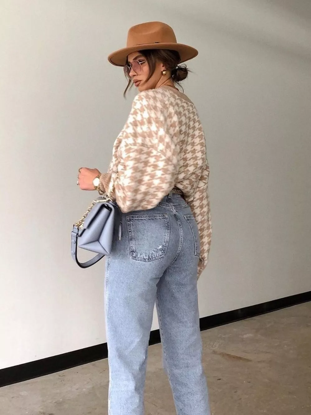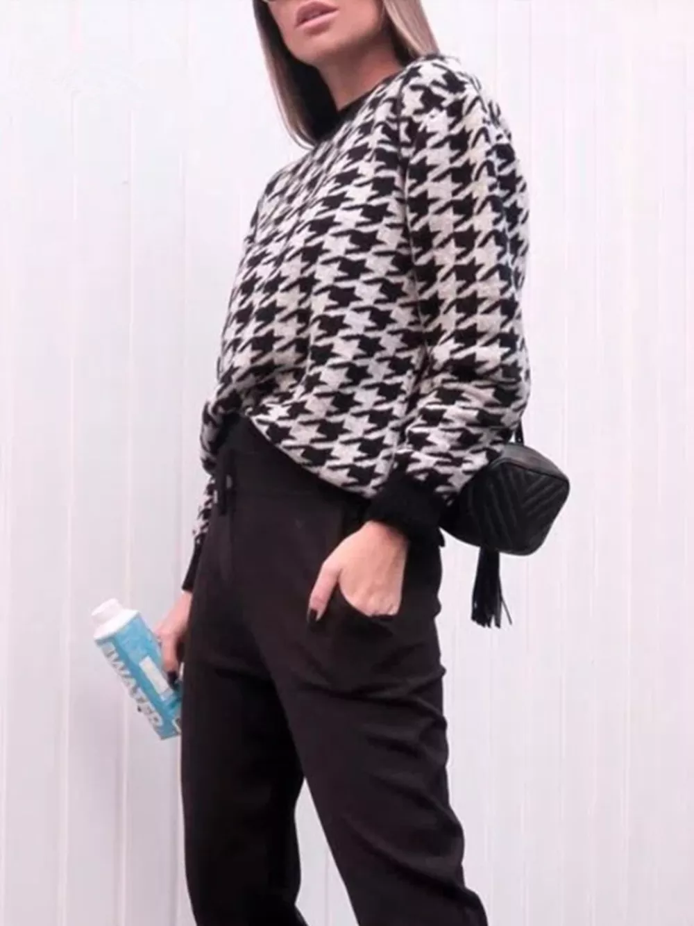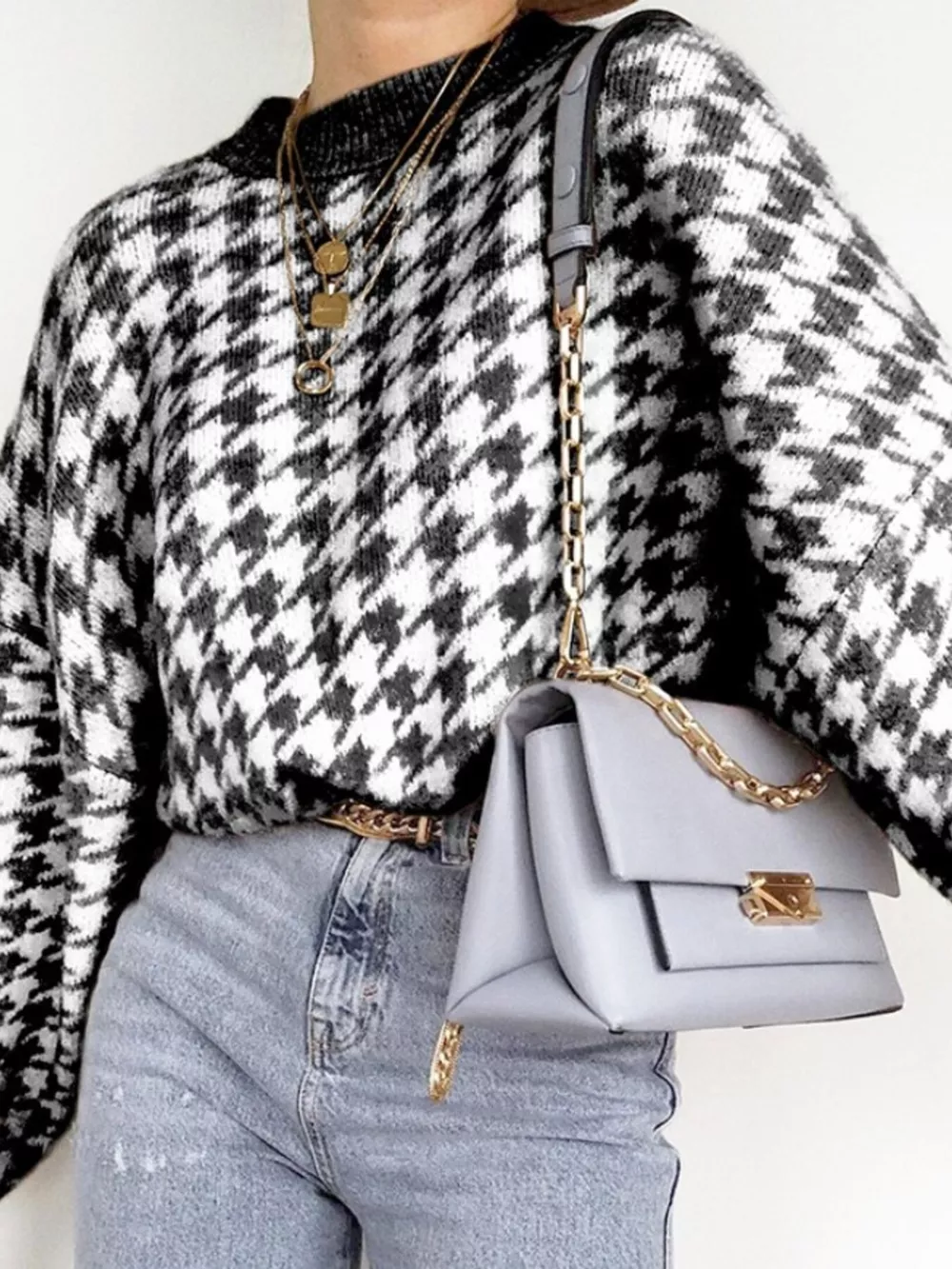 Full Size Houndstooth Pattern Oversized Sweater Plus Size