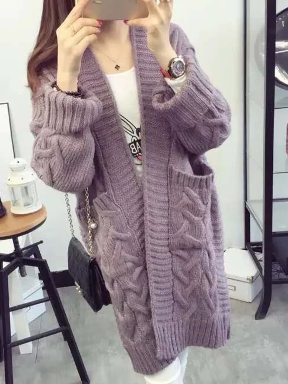Full Size Chunky Knit Open Front Cardigan Plus Size