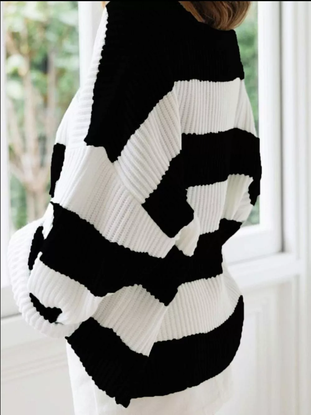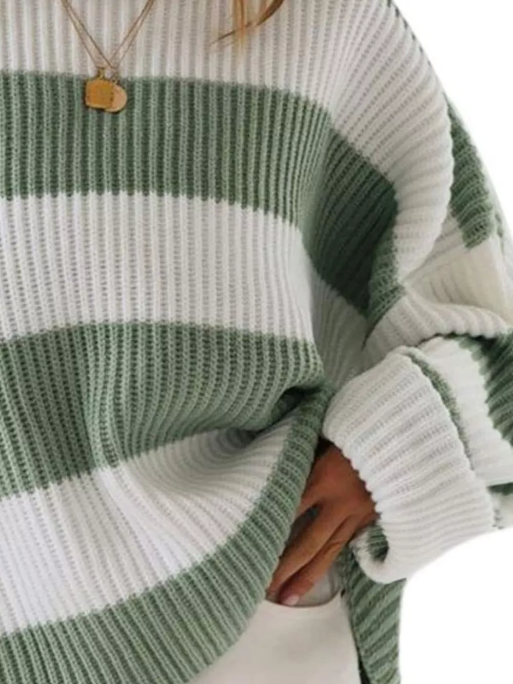 Full Size Contrast Striped Round Neck Sweater Plus Size