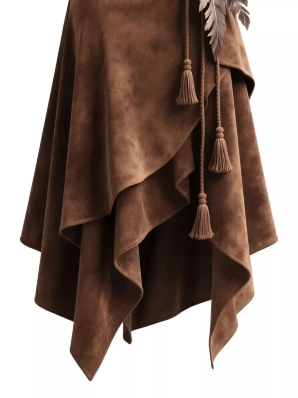 Full Size Tassel Suede Asymmetrical Skirt Plus Size