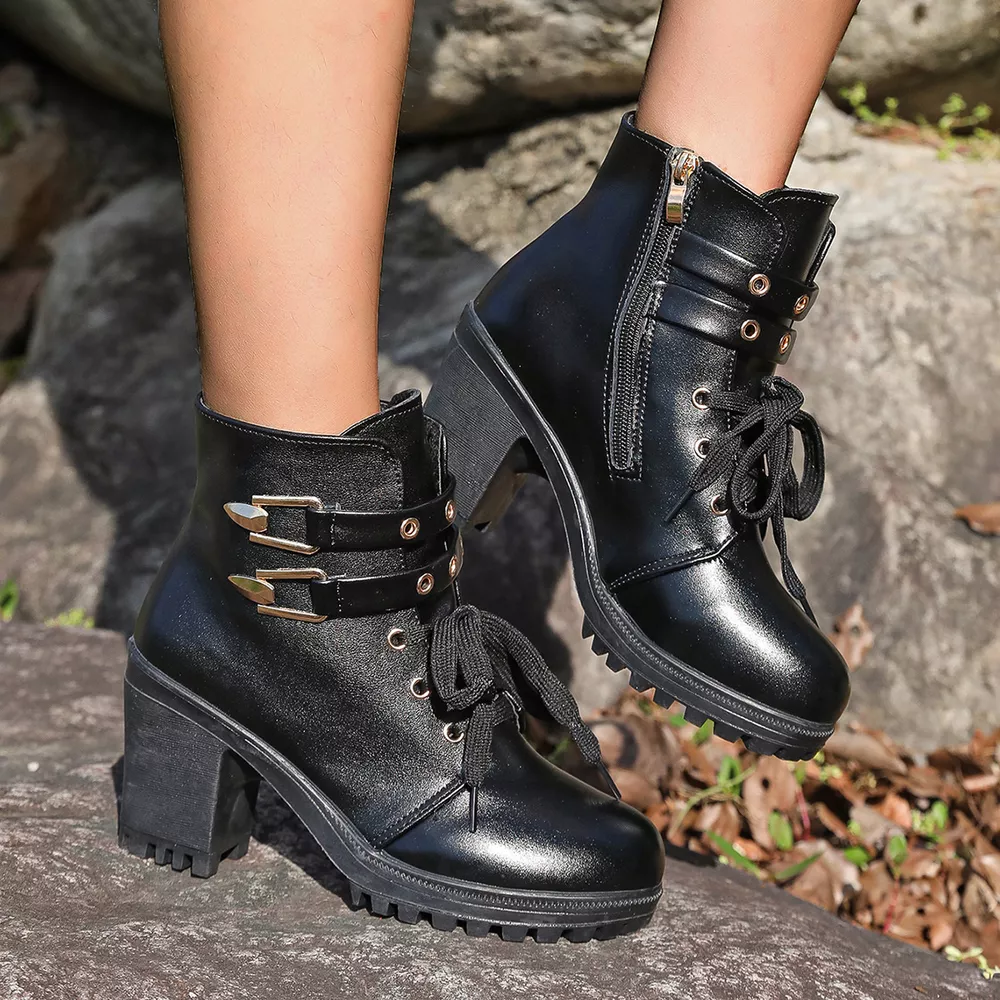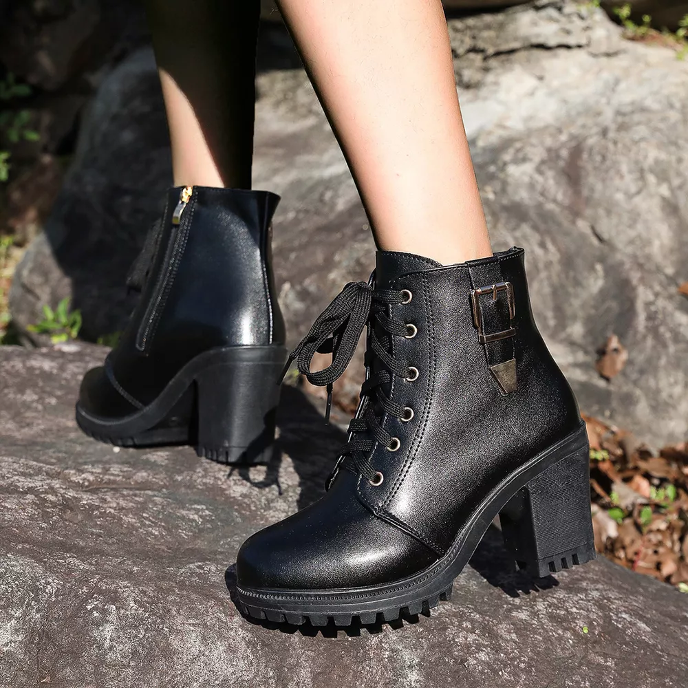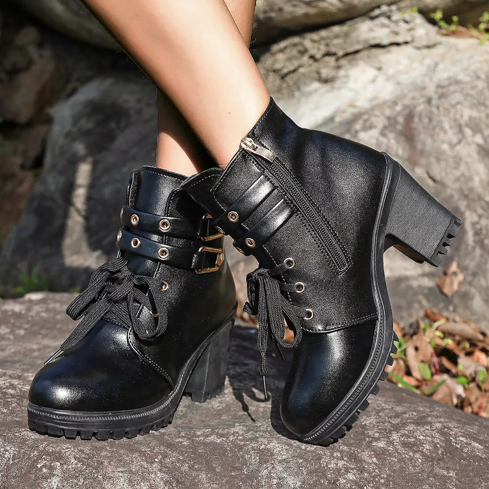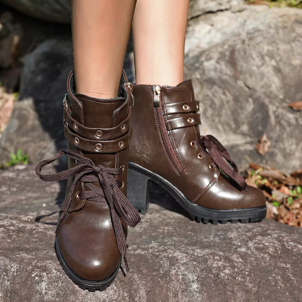 Lace Up Block Heels Boots