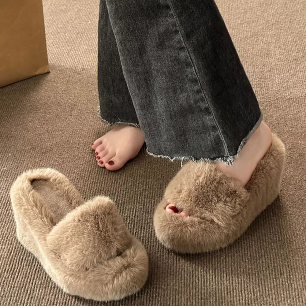 Fluffy Wedge Slippers