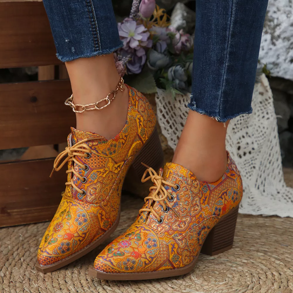 Point Toe Block Heels Ankle Boots
