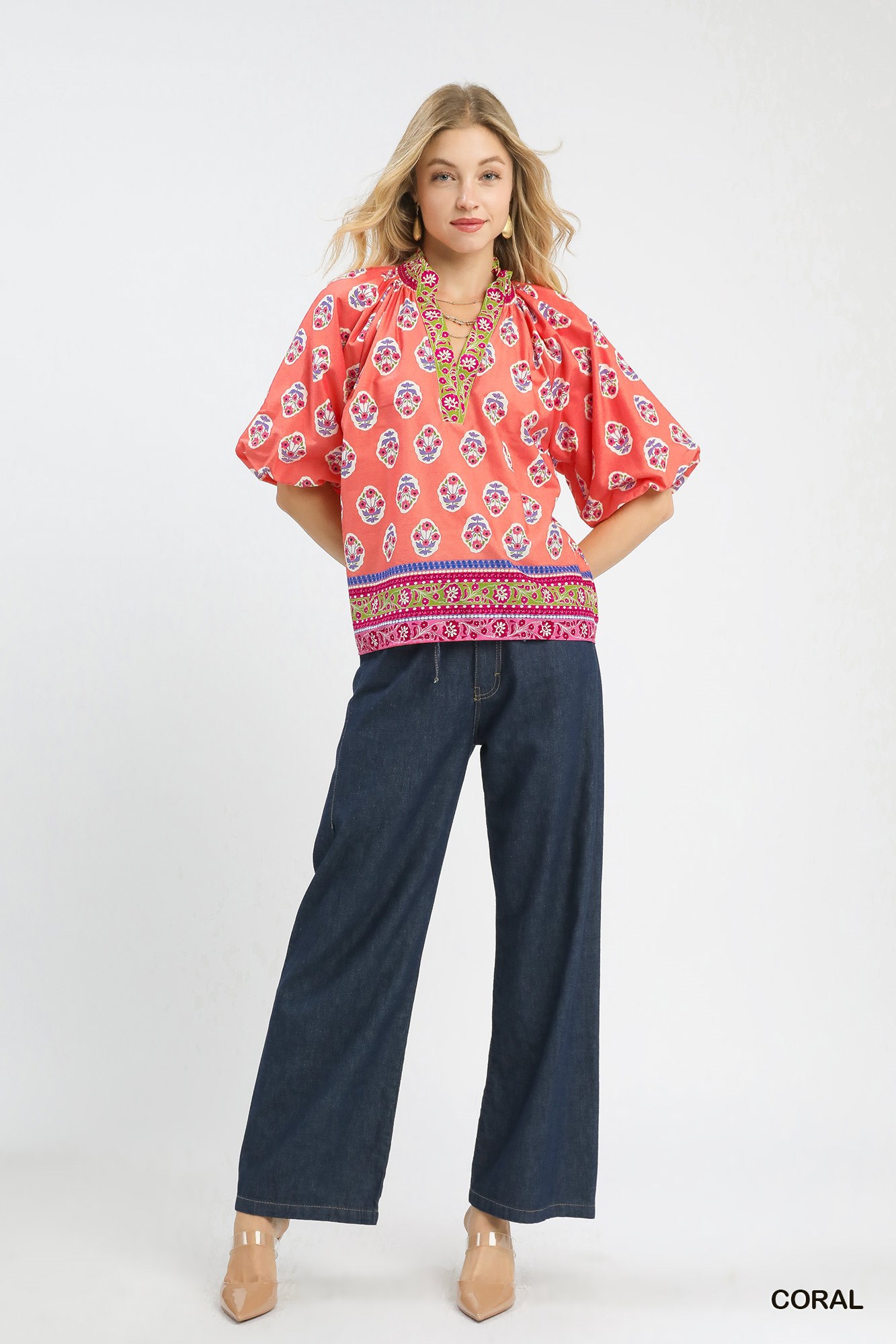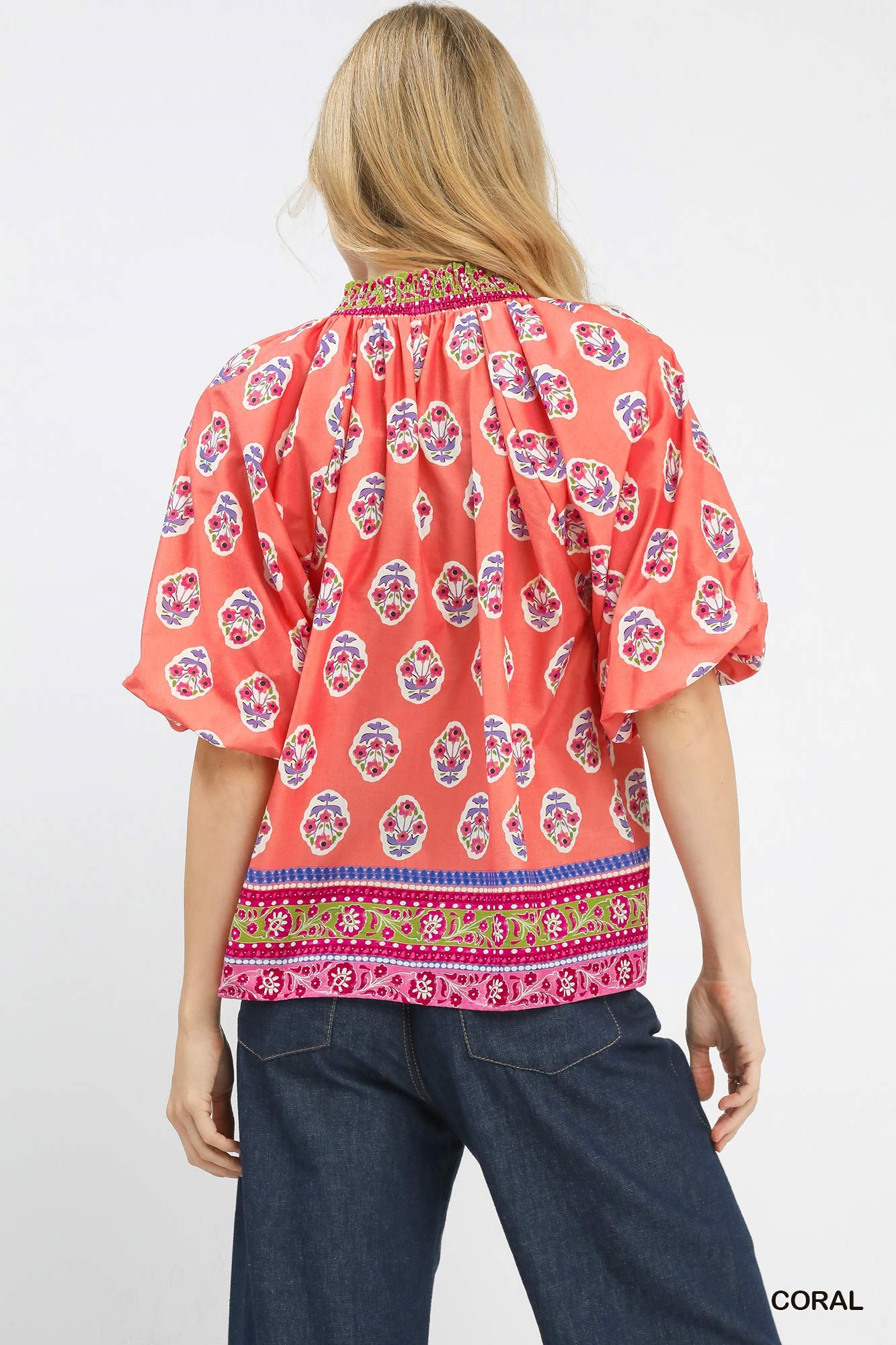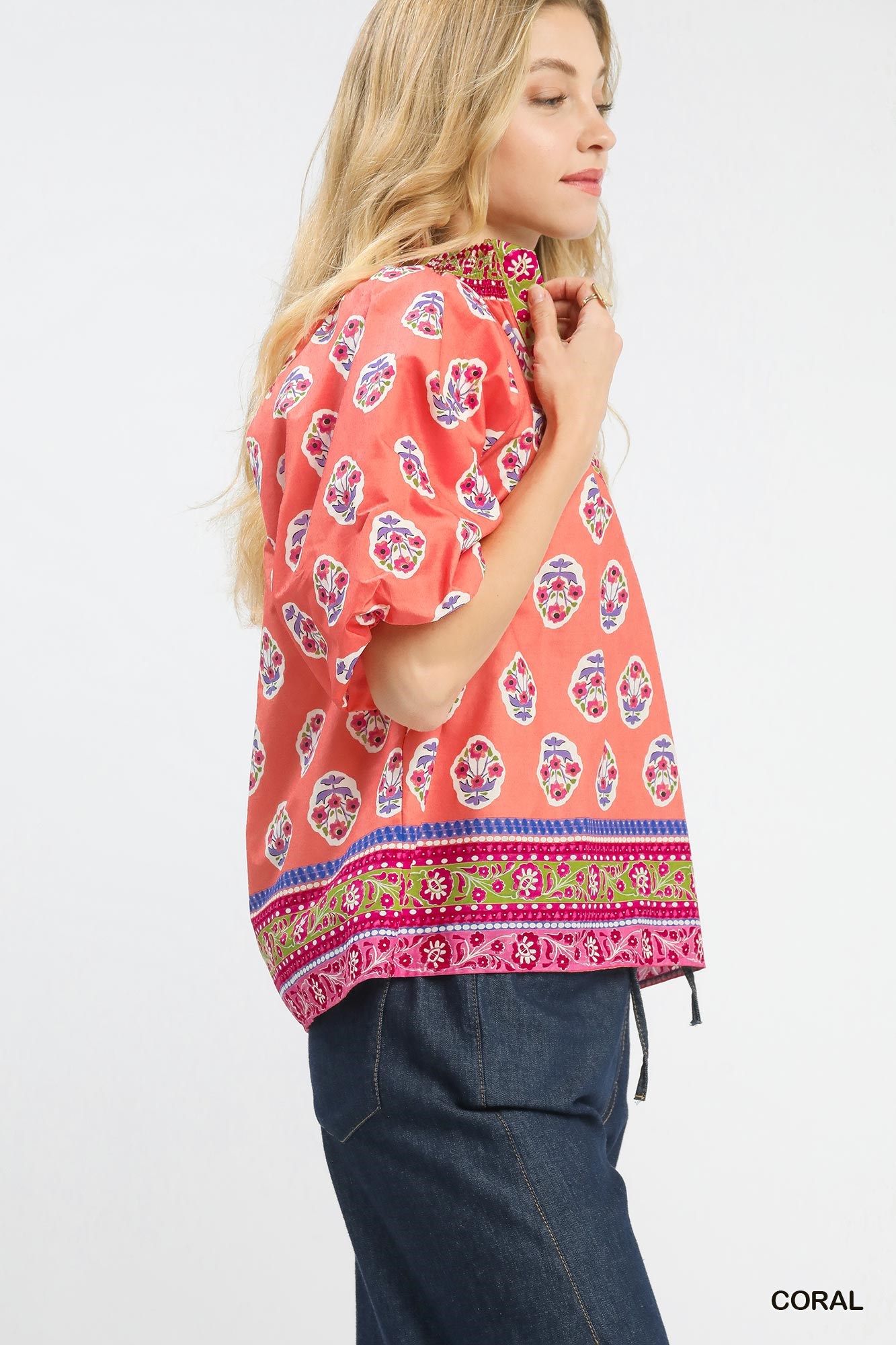 Umgee Boho Border Print Peasant Top