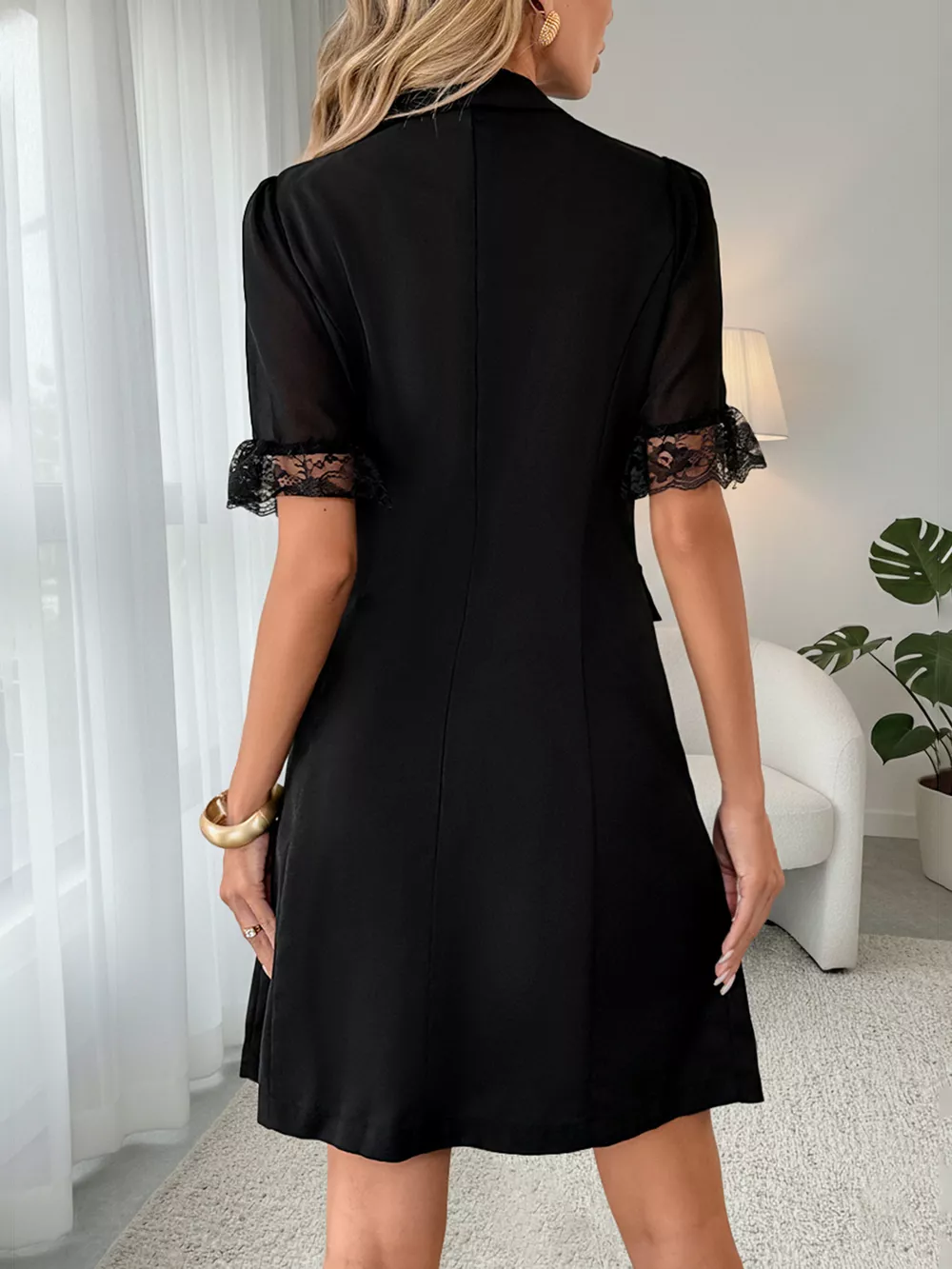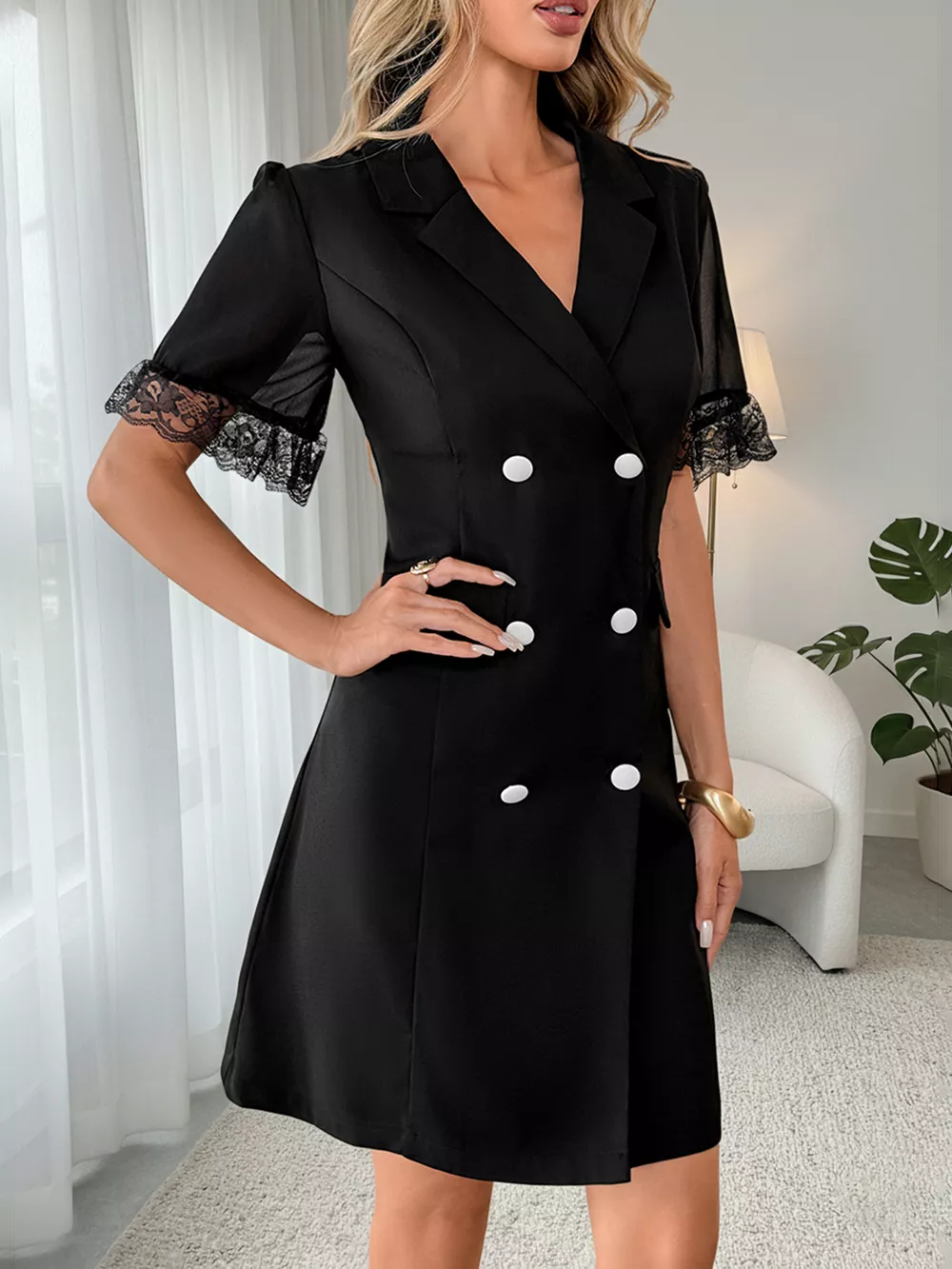 Lace Detail Double Breasted Blazer Dress