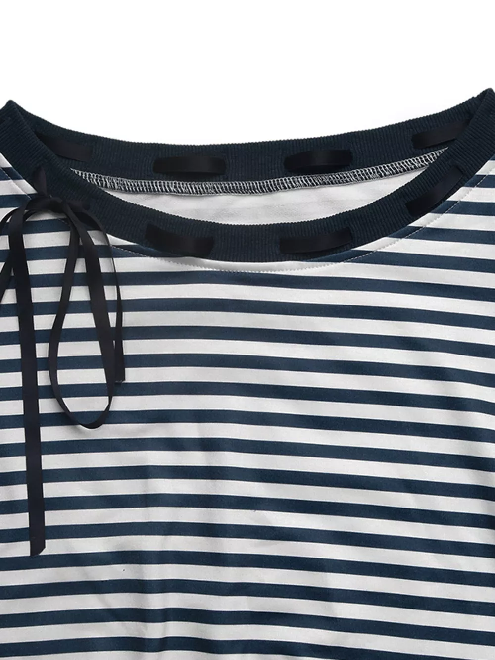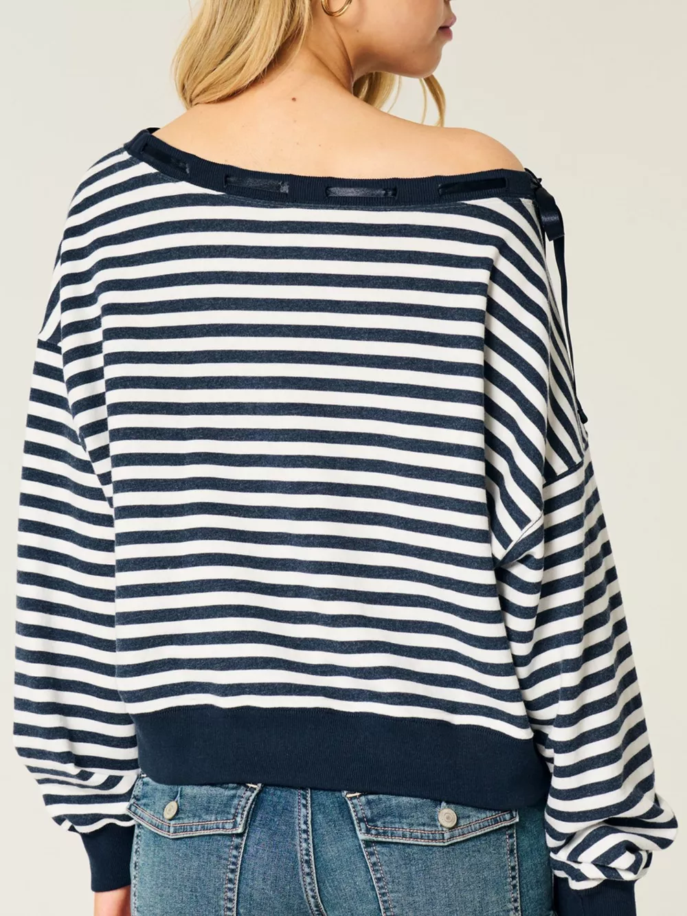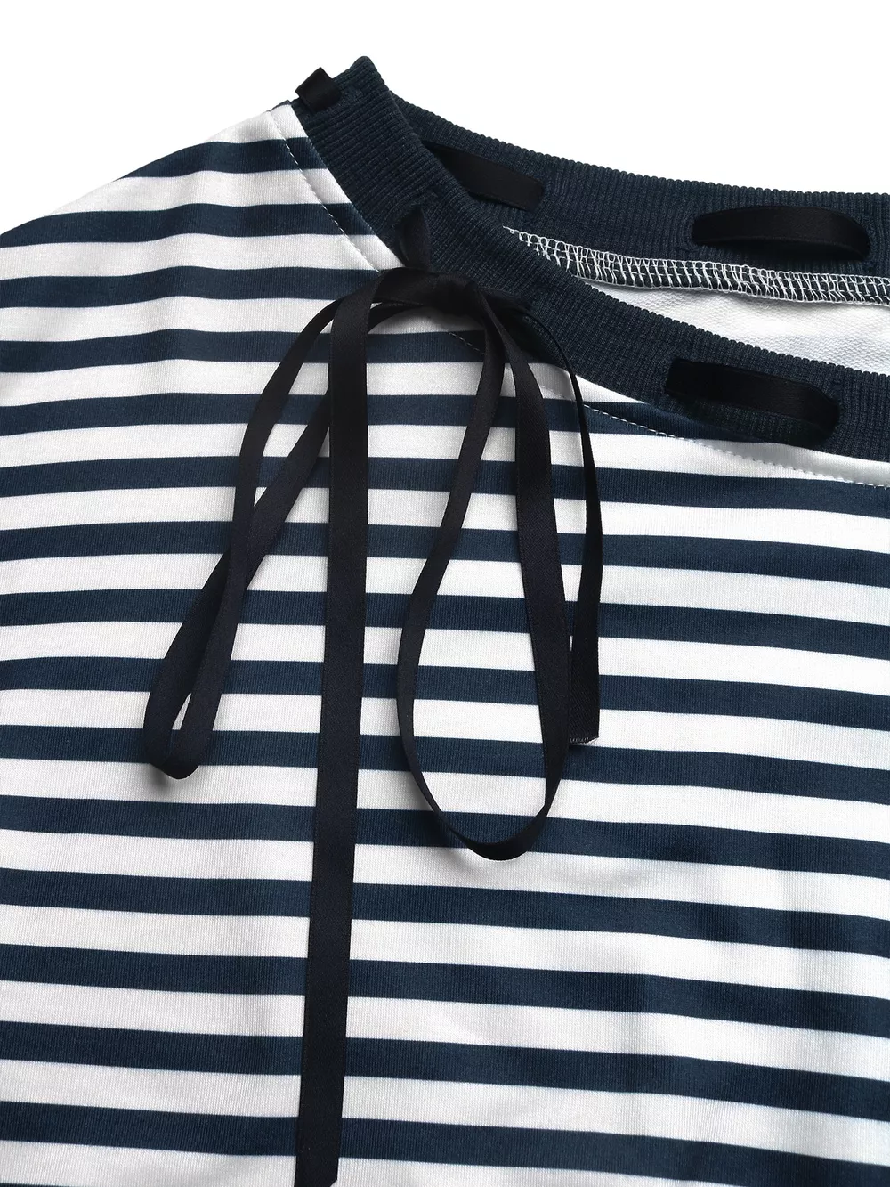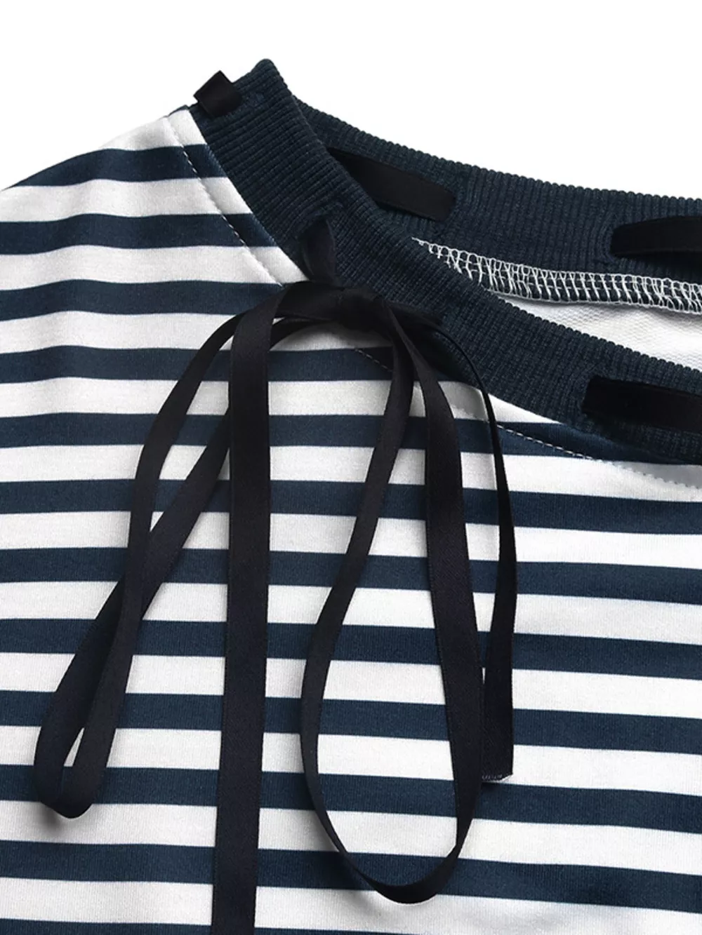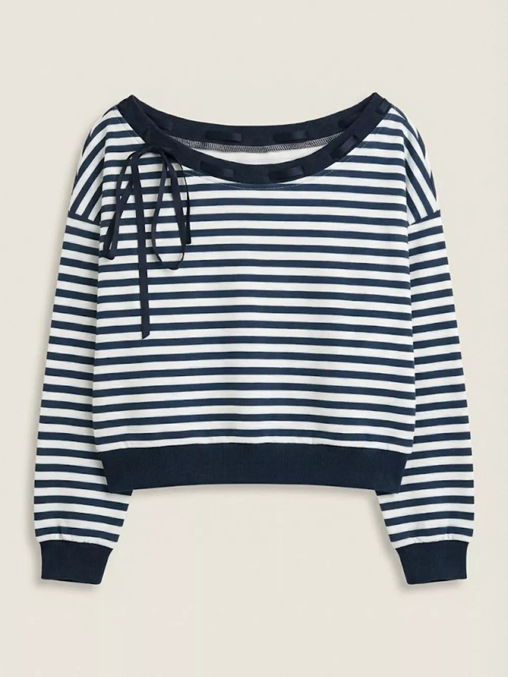 Striped Off-Shoulder Ribbon Accent Sweatshirt