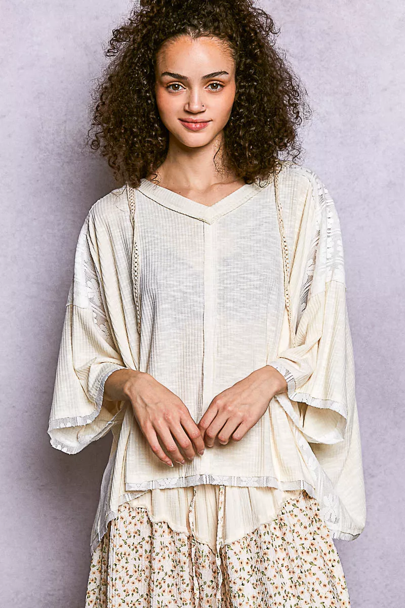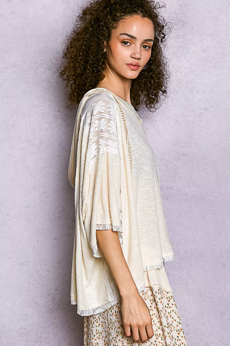 POL Short Sleeve Hoodie Top with Lace Detail