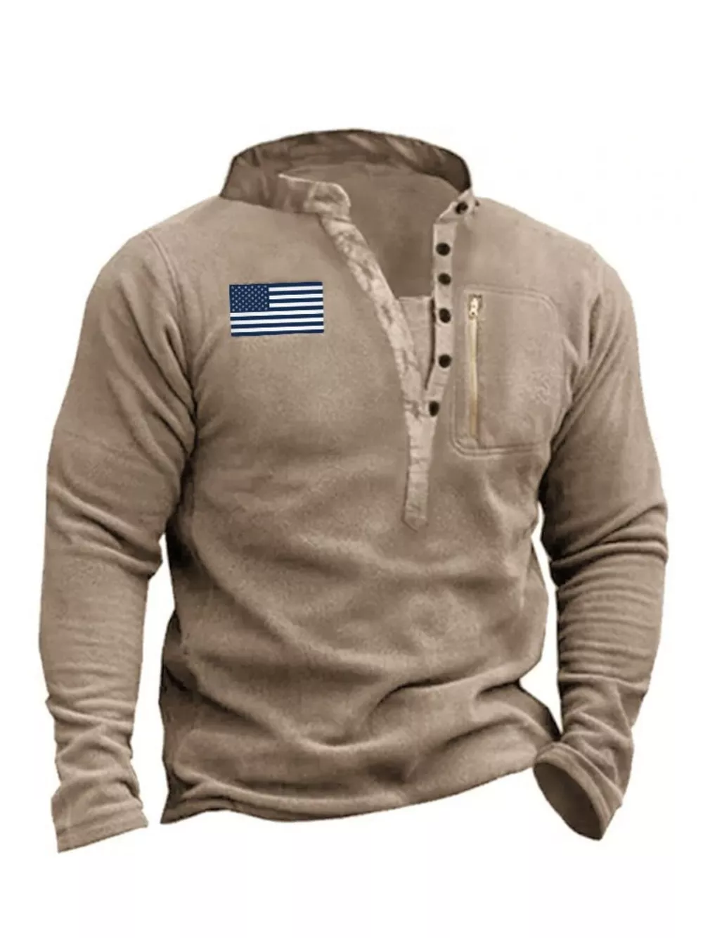 Men's Full Size Button Detail Long Sleeve Sweatshirt Plus Size