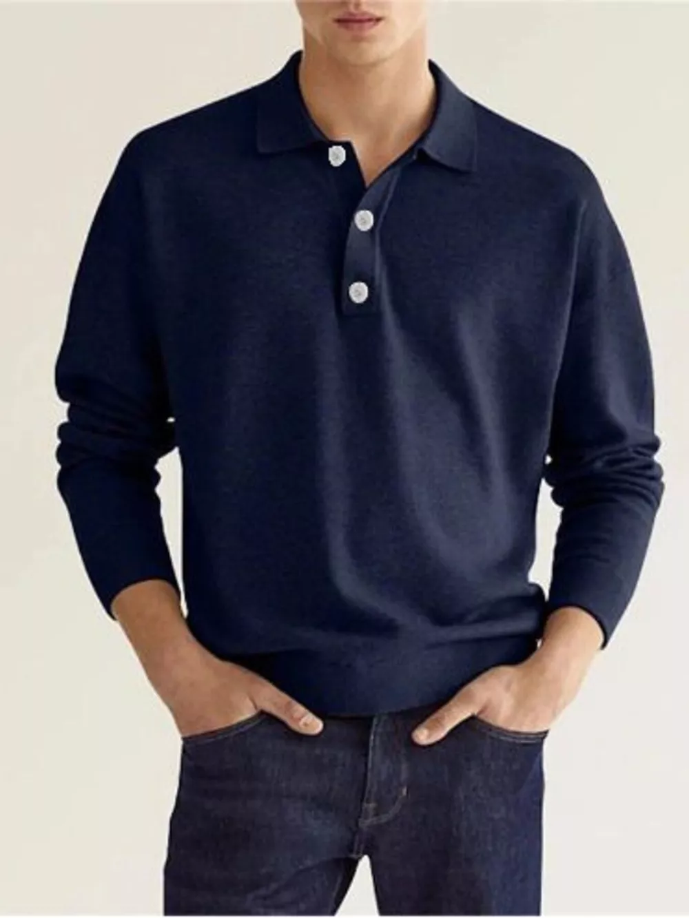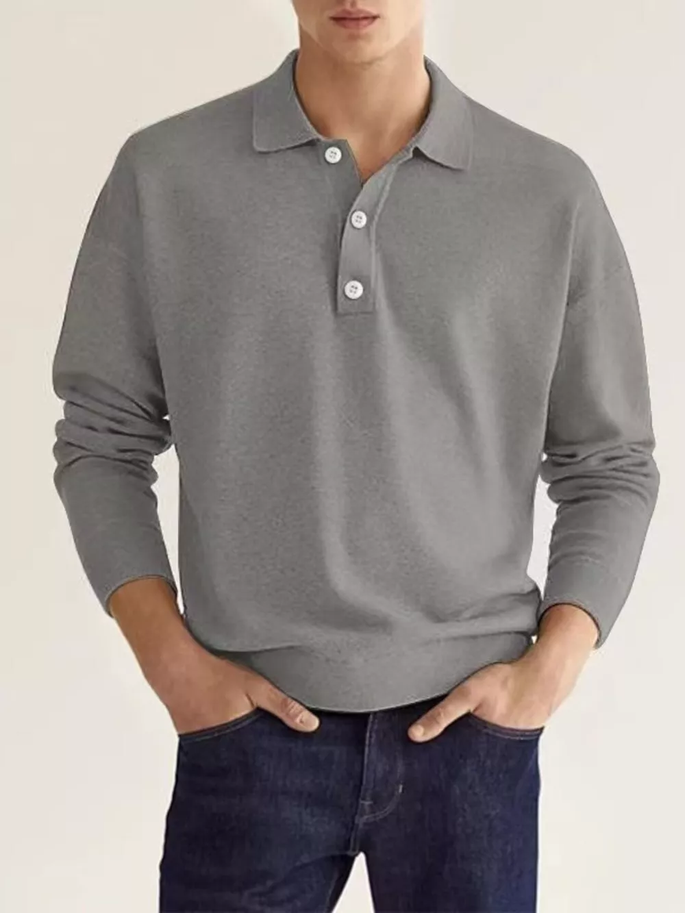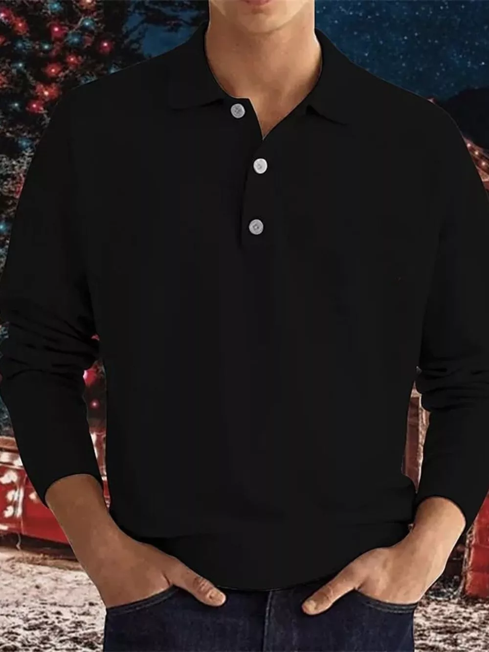Men's Plus Size Long Sleeve Casual Polo Shirt