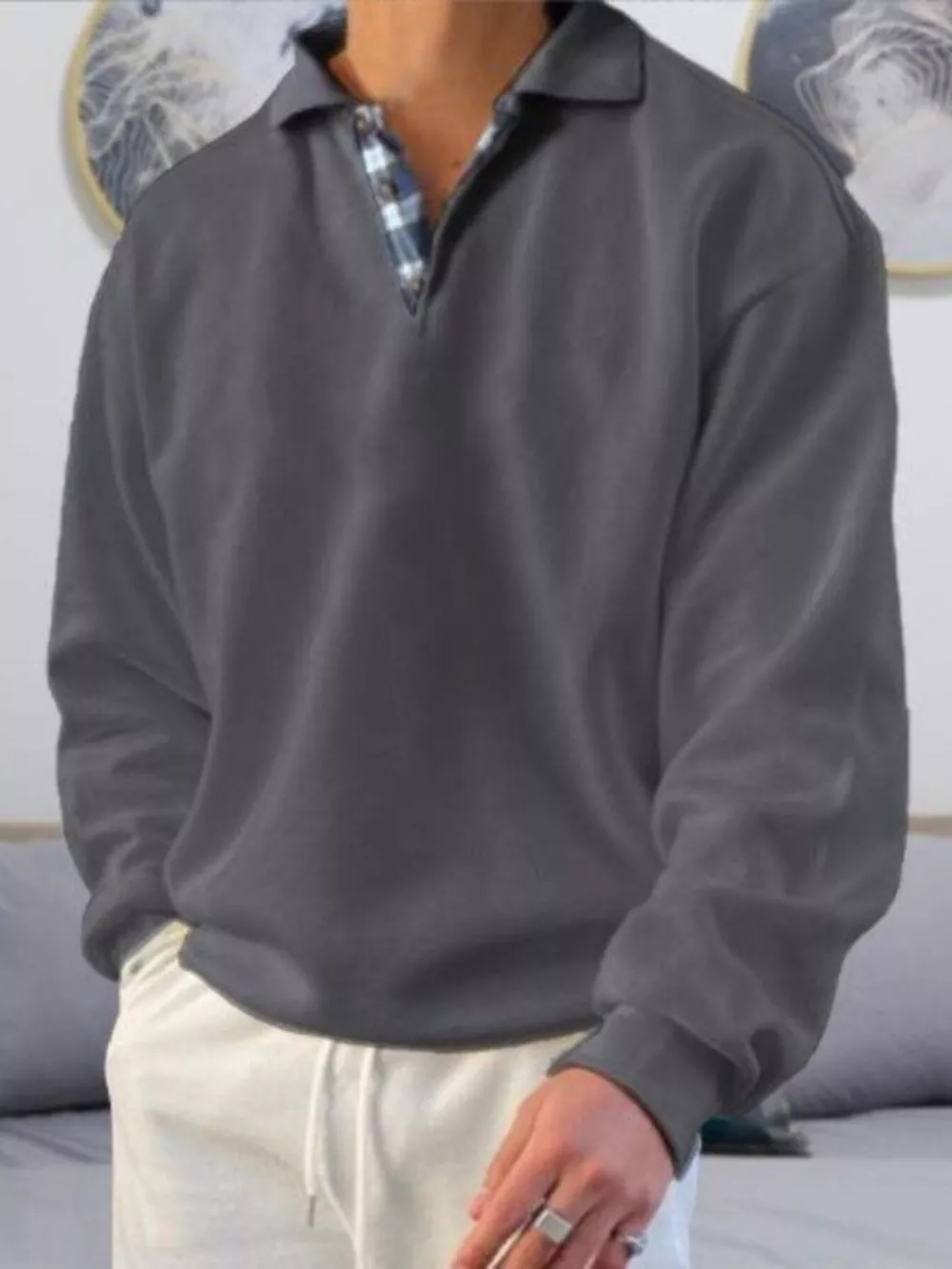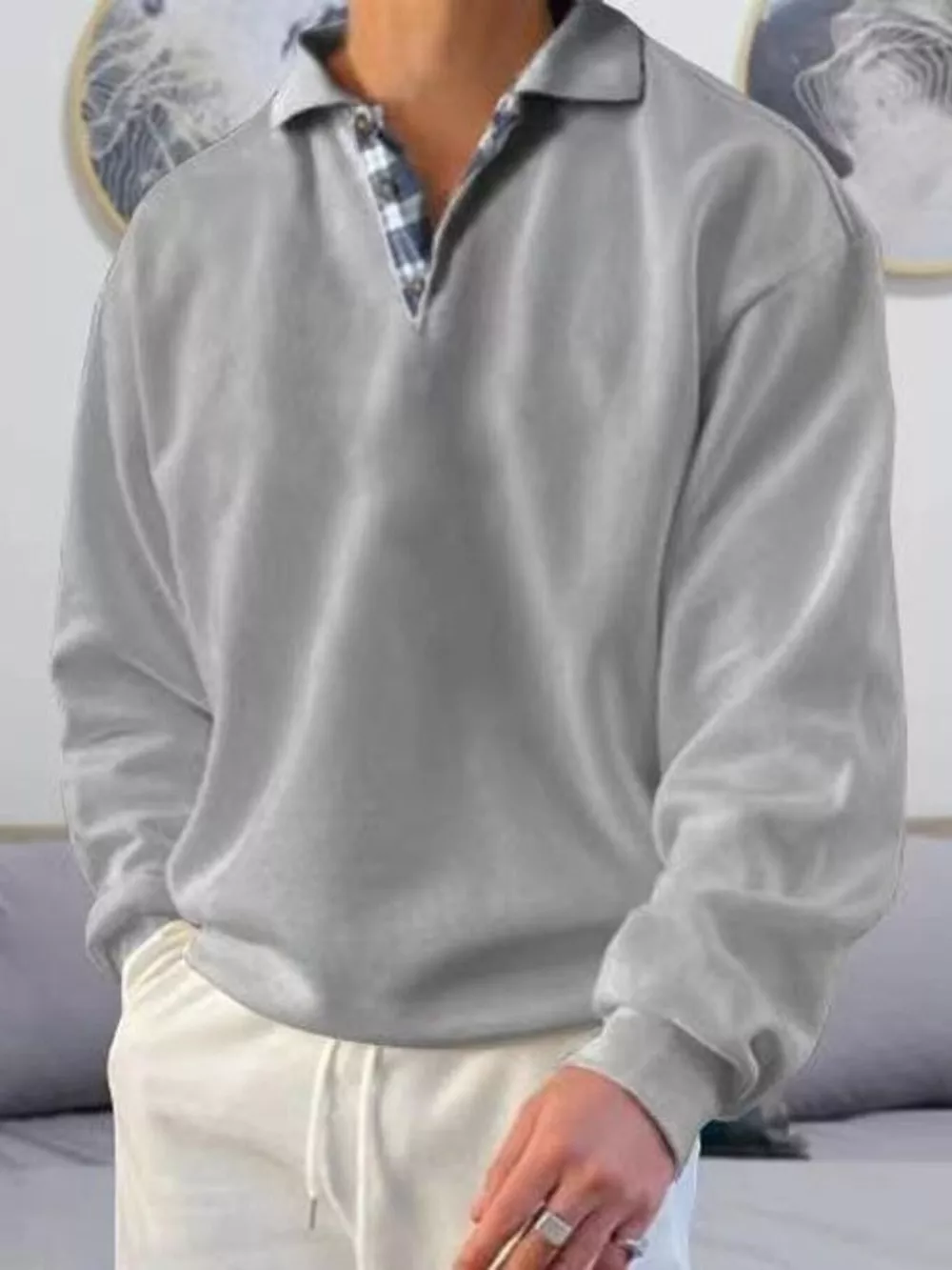 Men's Plus Size Casual Polo Collar Long Sleeve Top