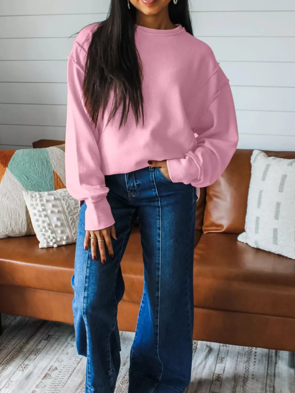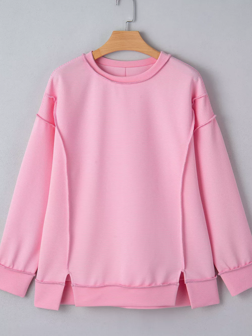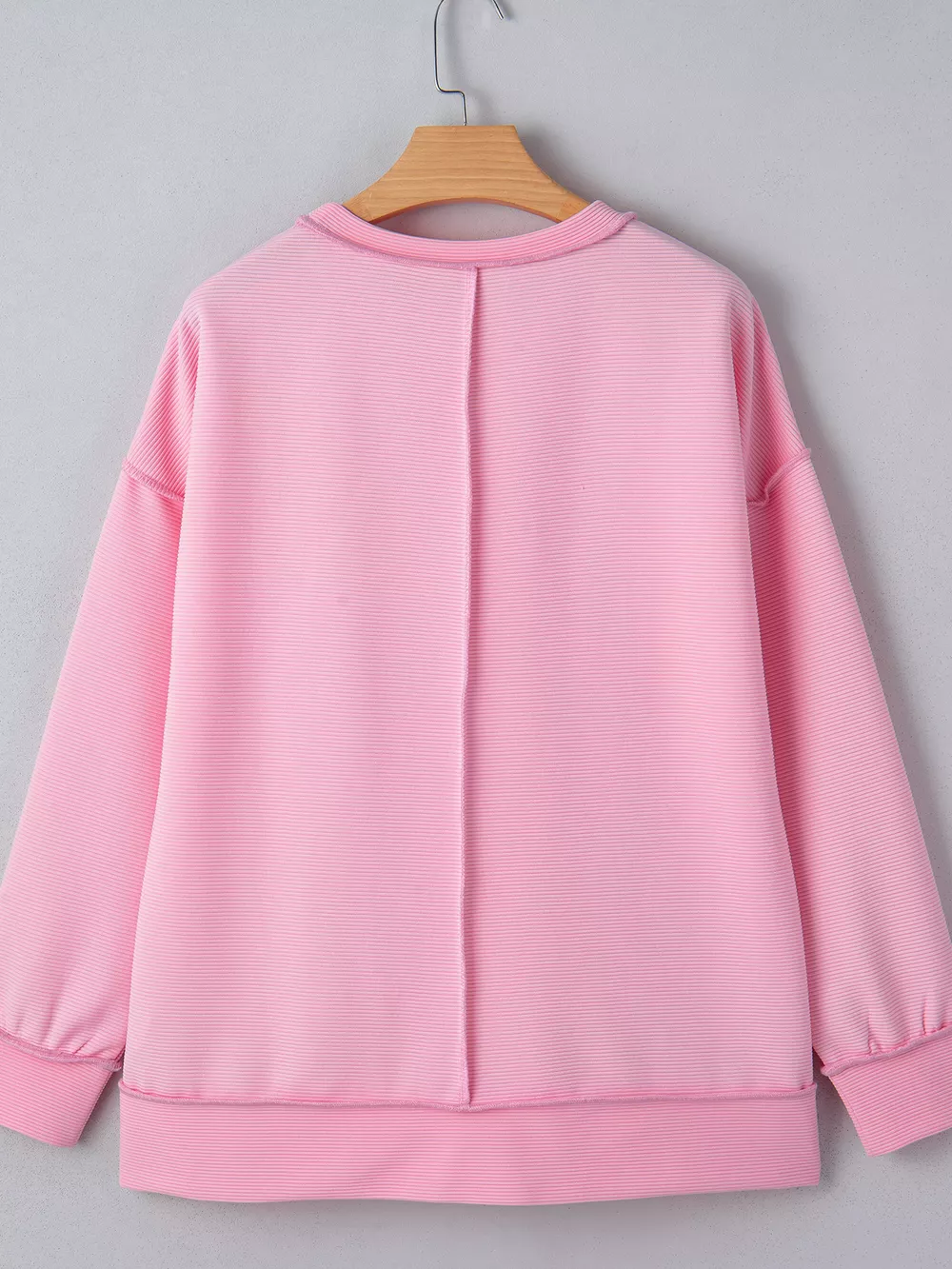 Horizontal Ribbed Exposed Seam Detail Drop Shoulder Baggy Pullover