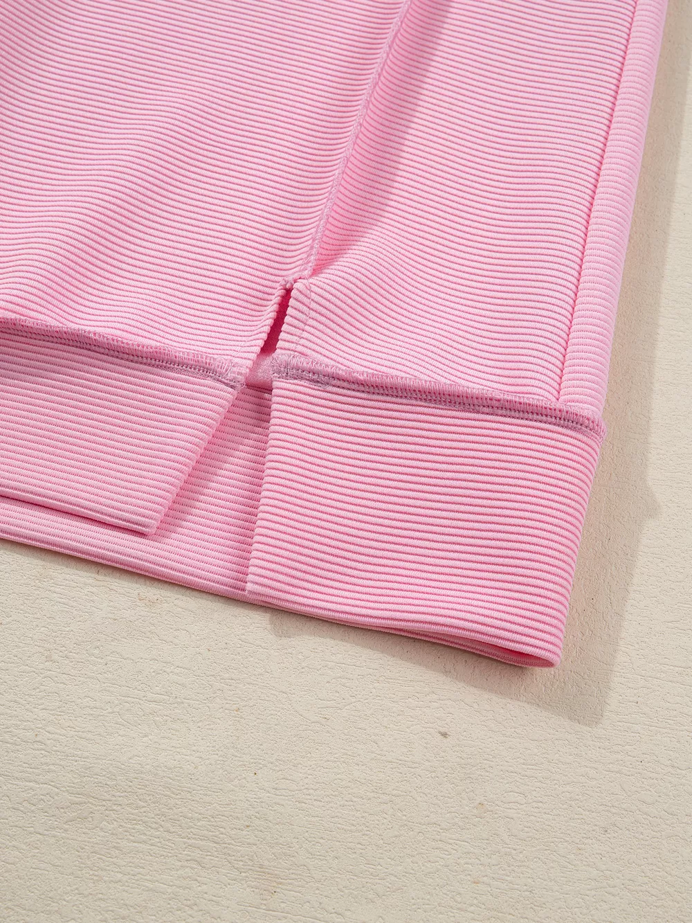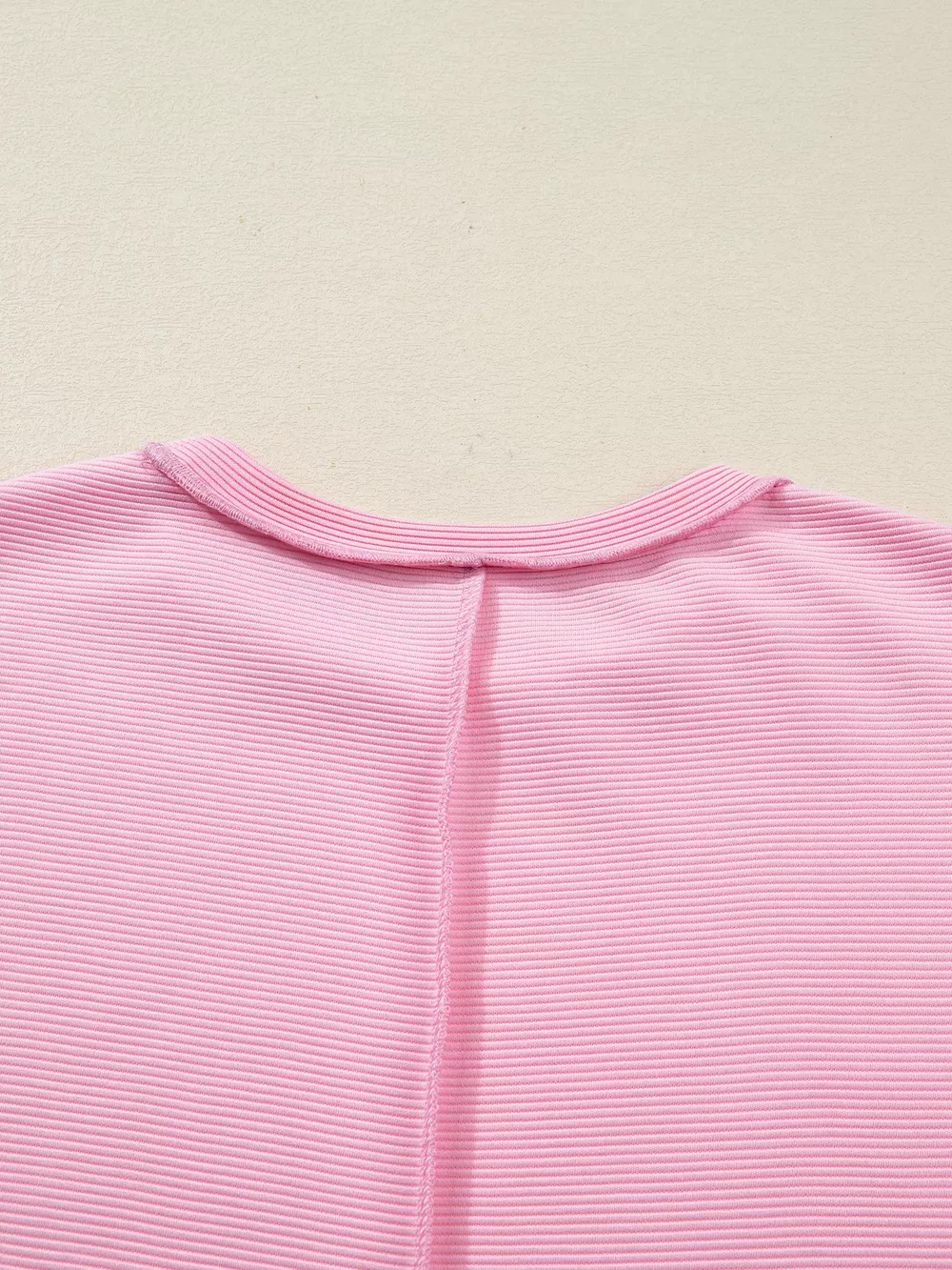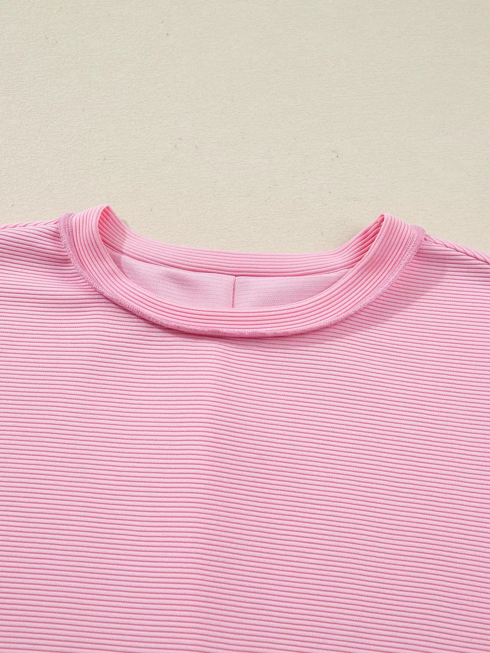 Horizontal Ribbed Exposed Seam Detail Drop Shoulder Baggy Pullover