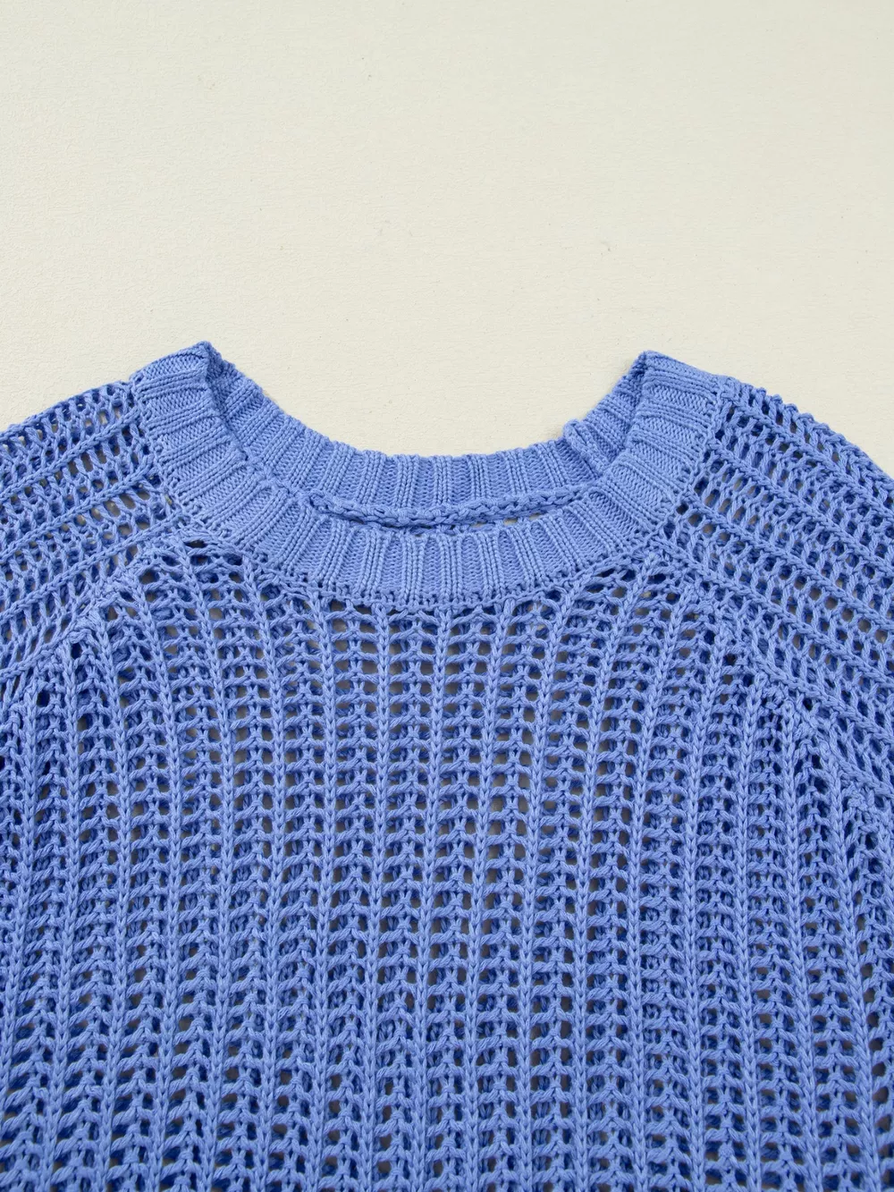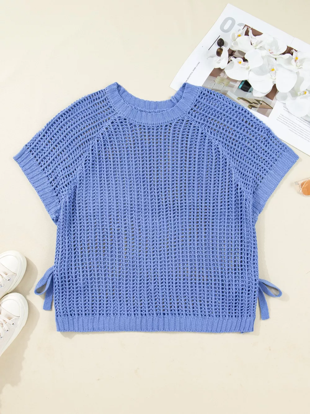 Plus Size Open Knit Bow Tie Short Sleeve Sweater