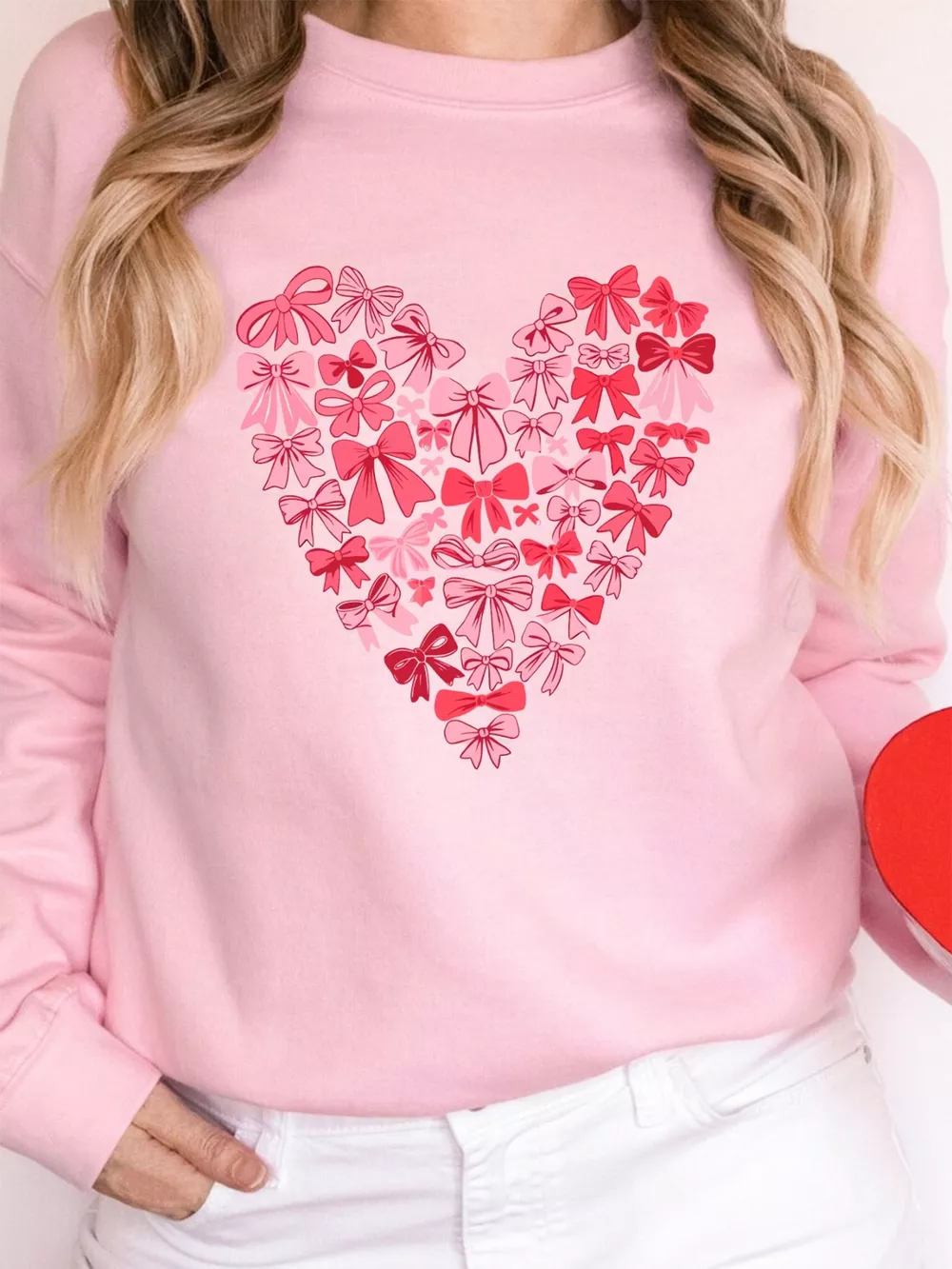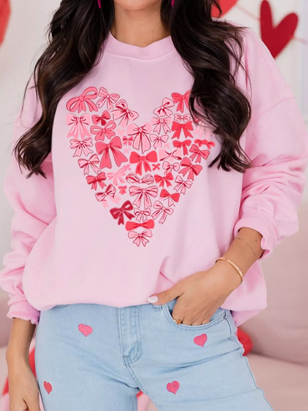 Bow Printed Big Heart Valentines Day Pullover Sweatshirt