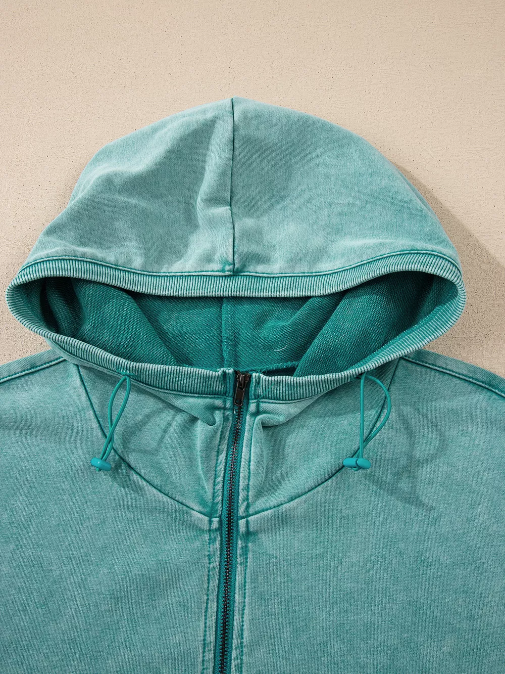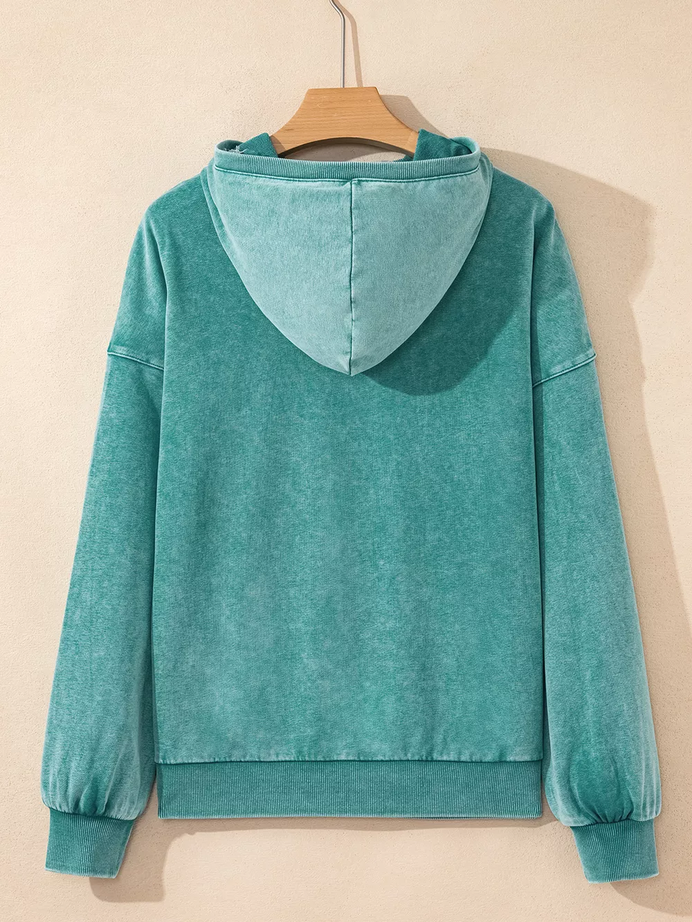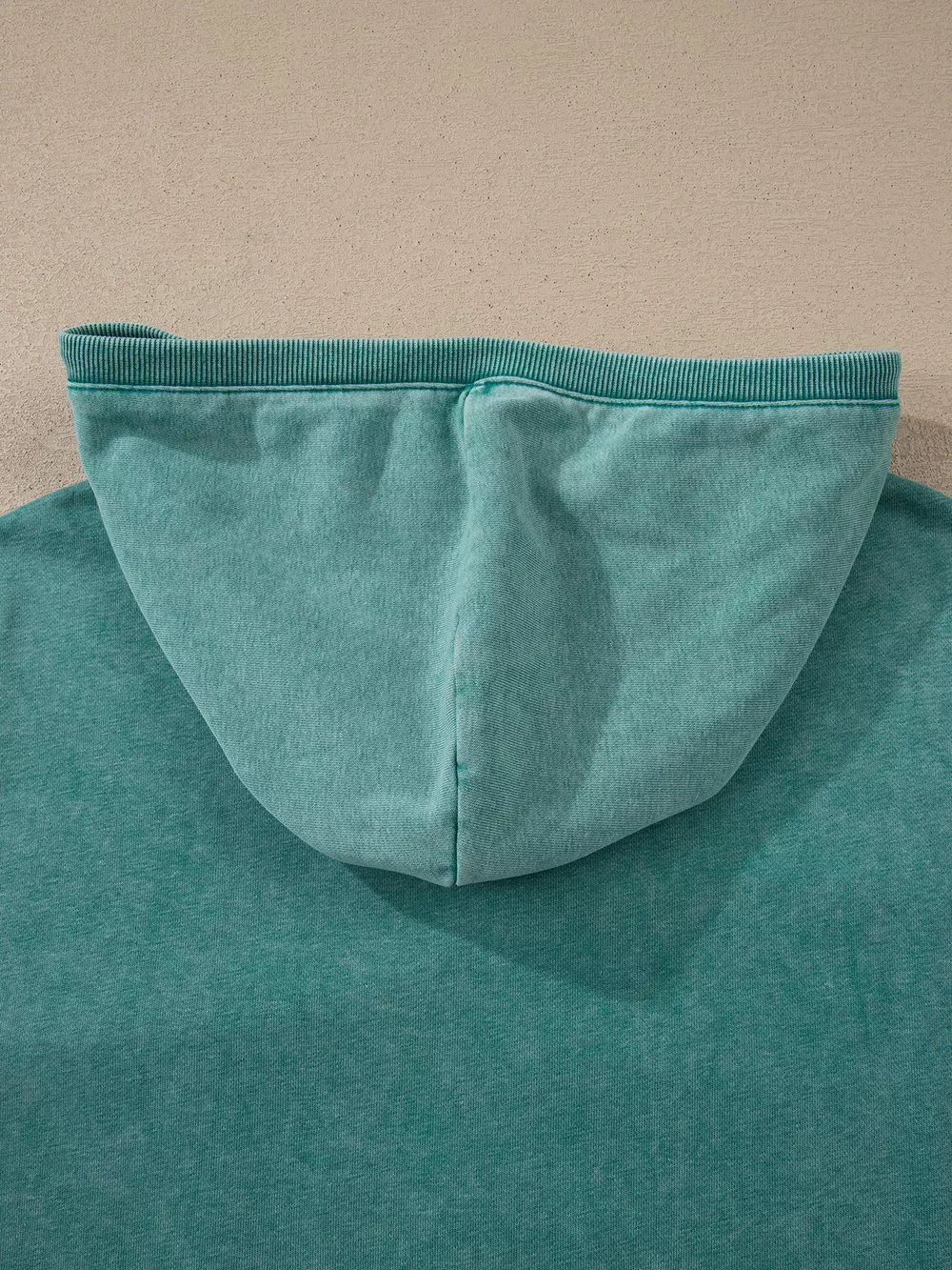 Half Zip Kangaroo Pocket Mineral Wash Baggy Hoodie