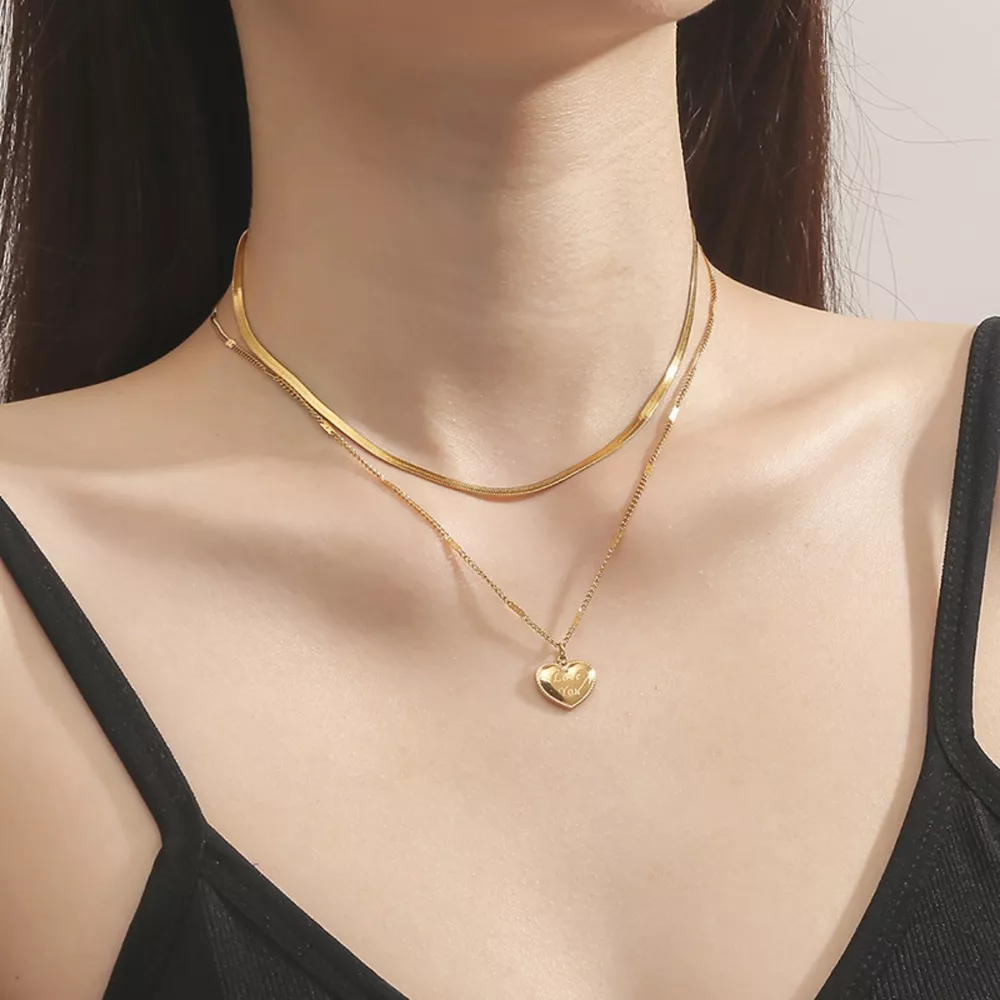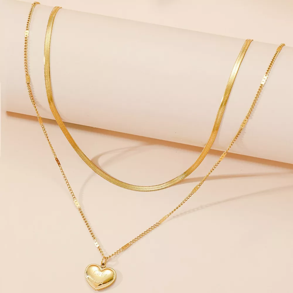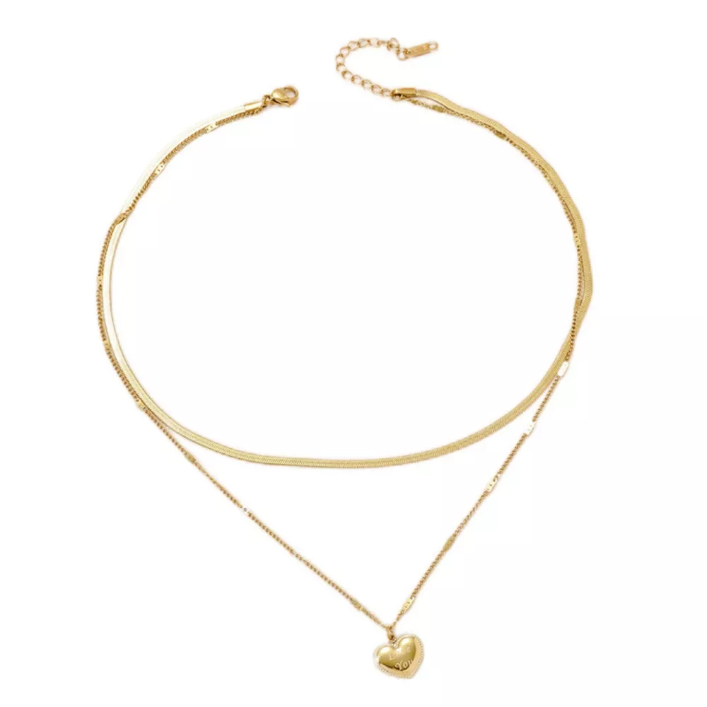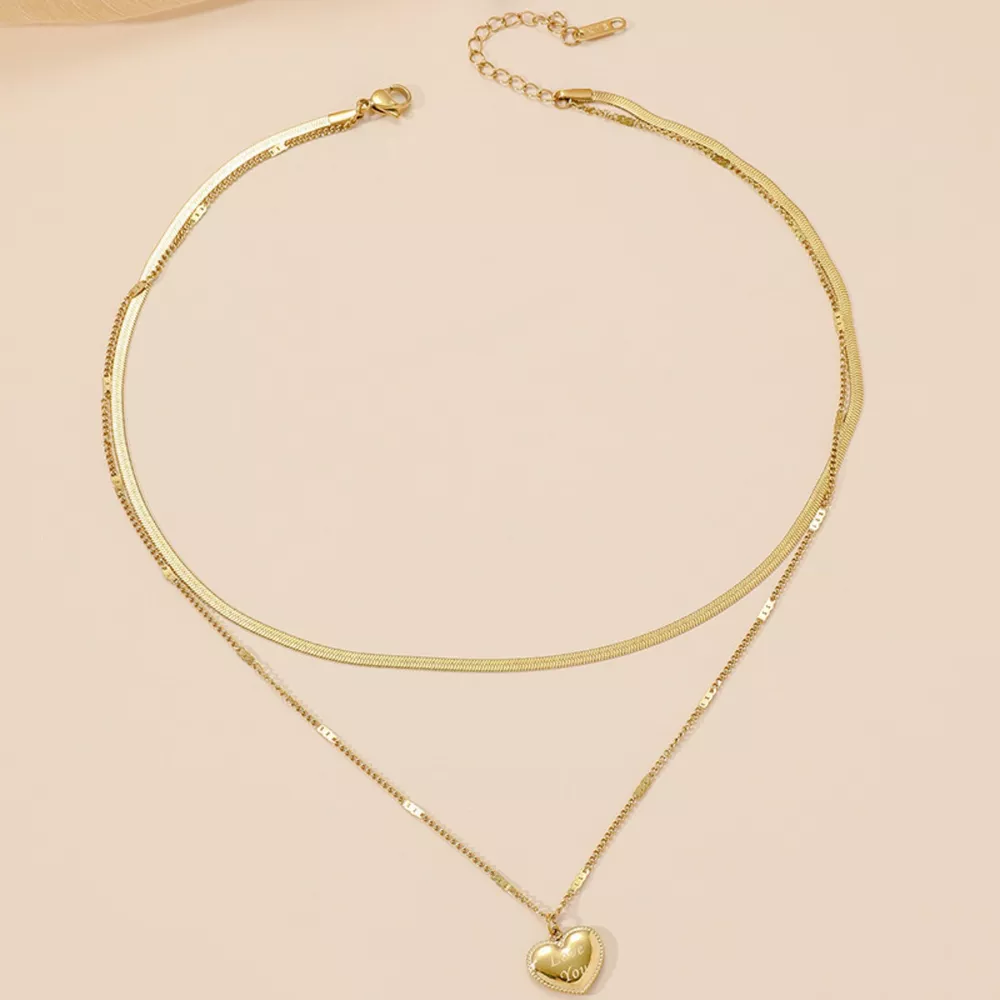 18K Gold-Plated Double Layered Heart Pendant Necklace