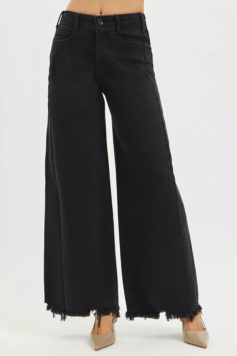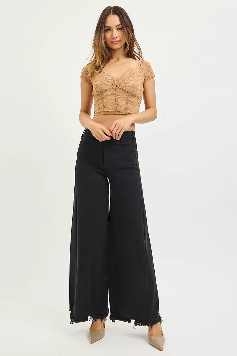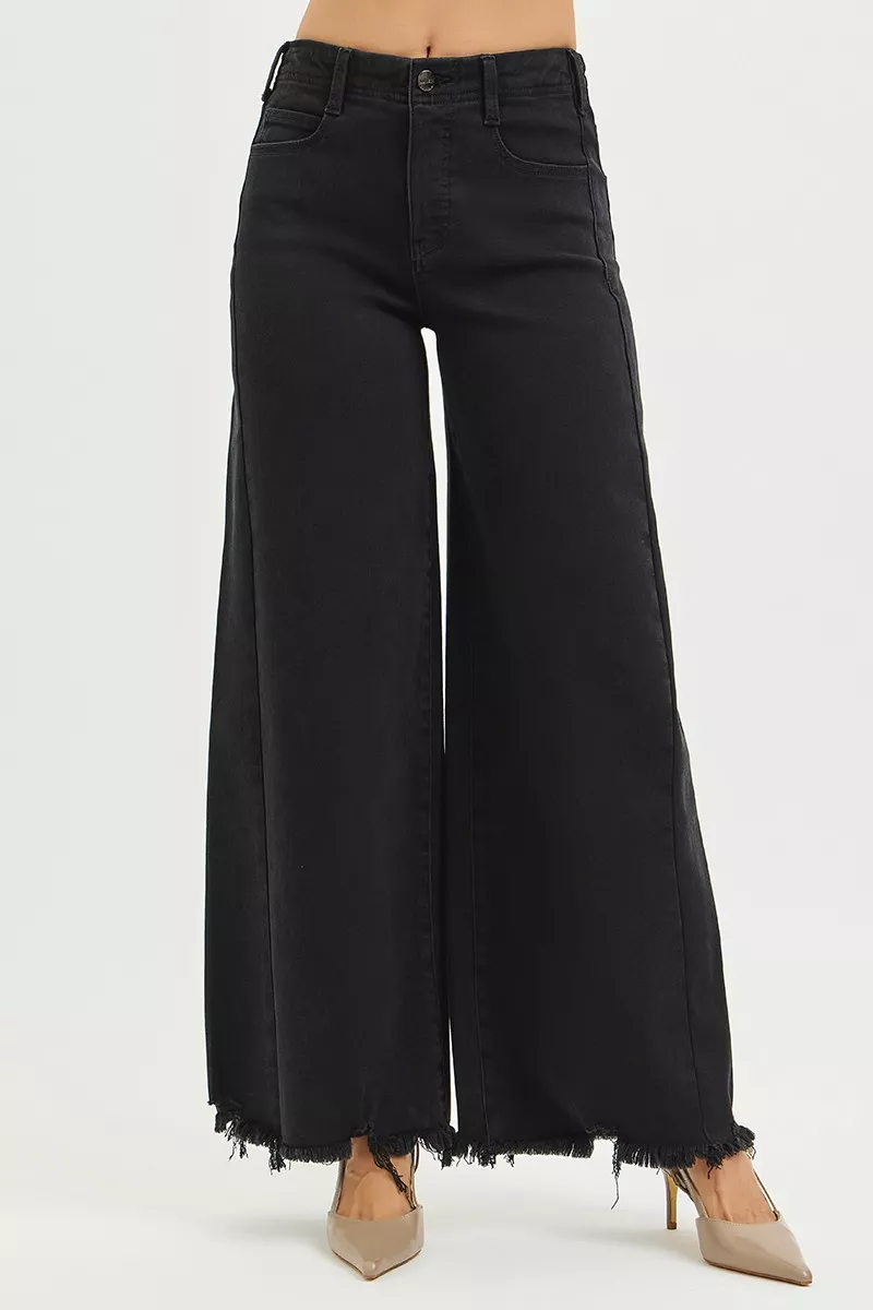 RISEN Tummy Control High Rise Palazzo Leg Frayed Hem Jeans