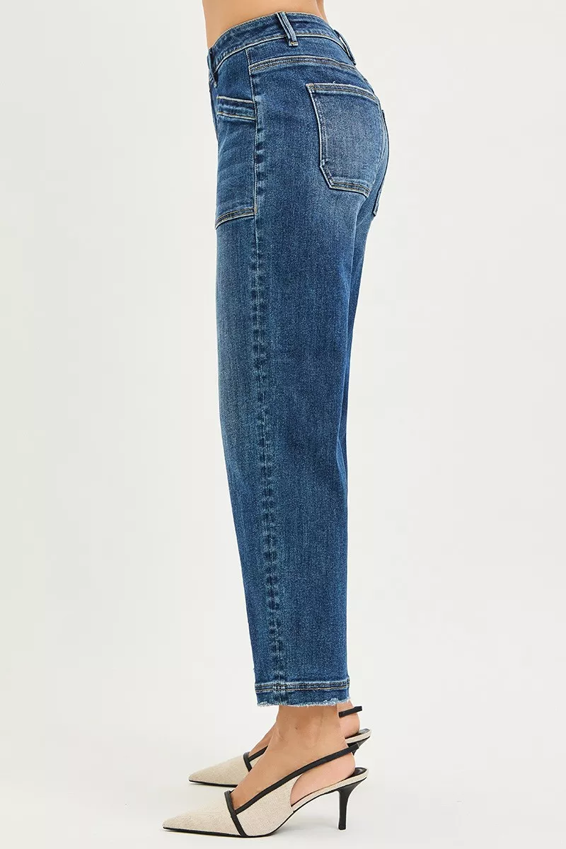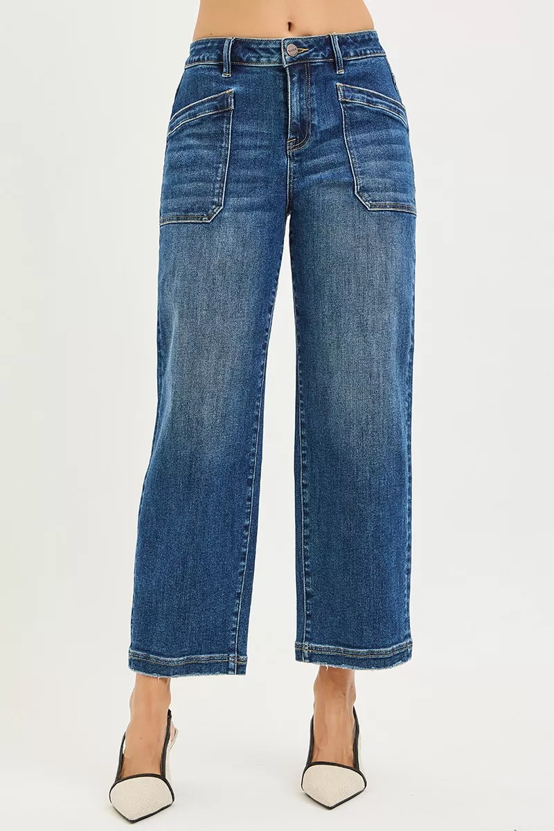RISEN Slouchy Cropped Baggy Jeans with Front Patch Pocket