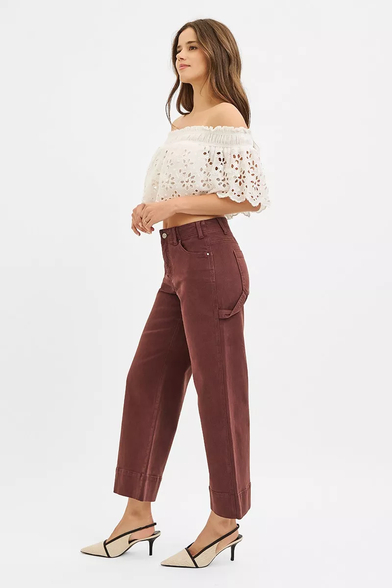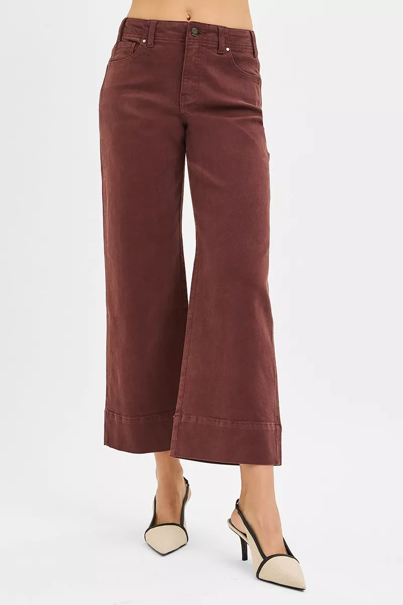 RISEN Tummy Control High Rise Crop Wide No Waist Band Pants