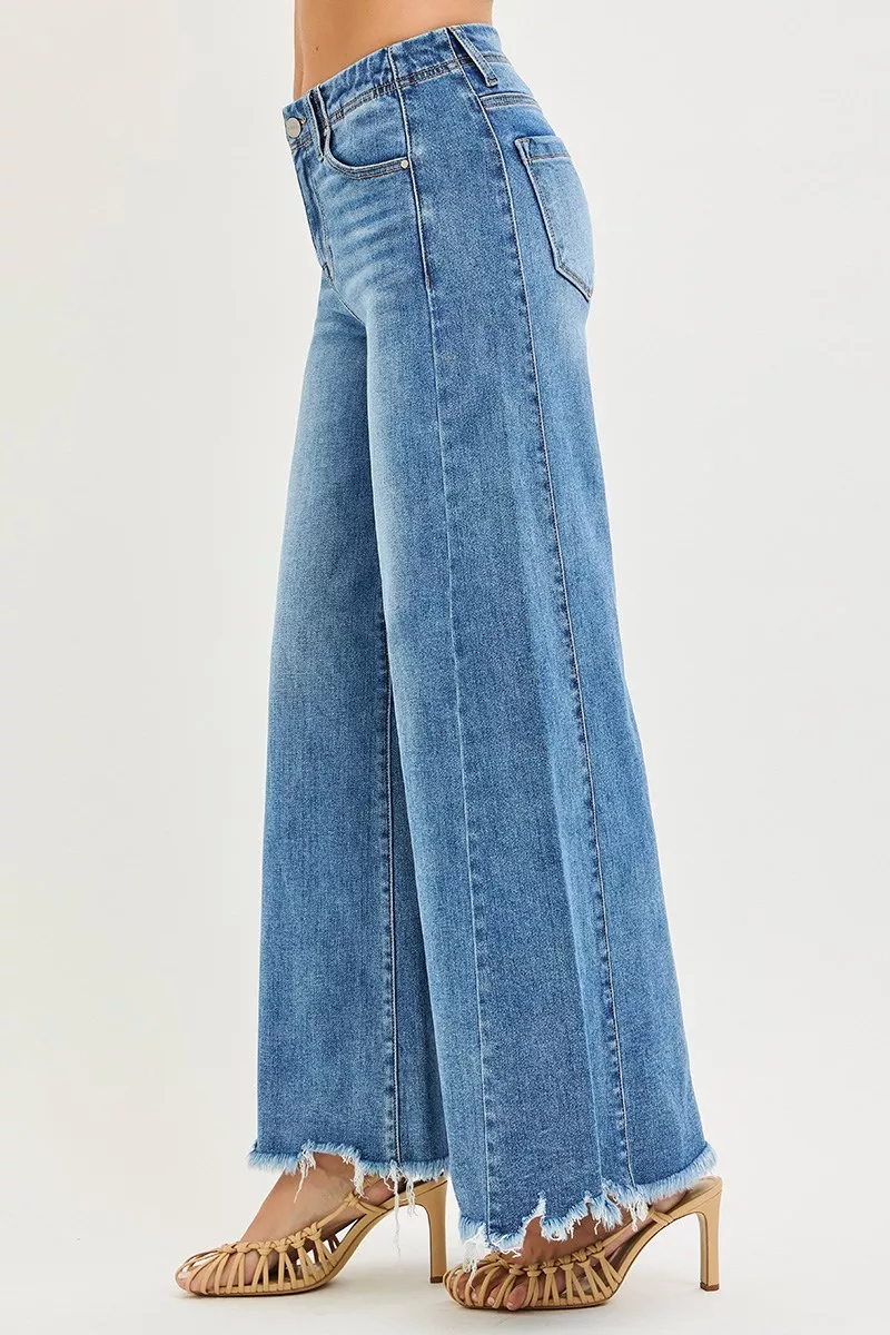 These High Rise Ankle Wide Jeans are a chic and fashion-forward choice for your denim wardrobe. The high-rise design provides a flattering silhouette and elongates the legs. With a wide leg and cropped ankle length, these jeans offer a modern and stylish look. Perfect for showcasing your favorite footwear, these jeans can be dressed up or down with ease. Elevate your outfit with these versatile and on-trend high rise jeans that will become a staple in your wardrobe.
