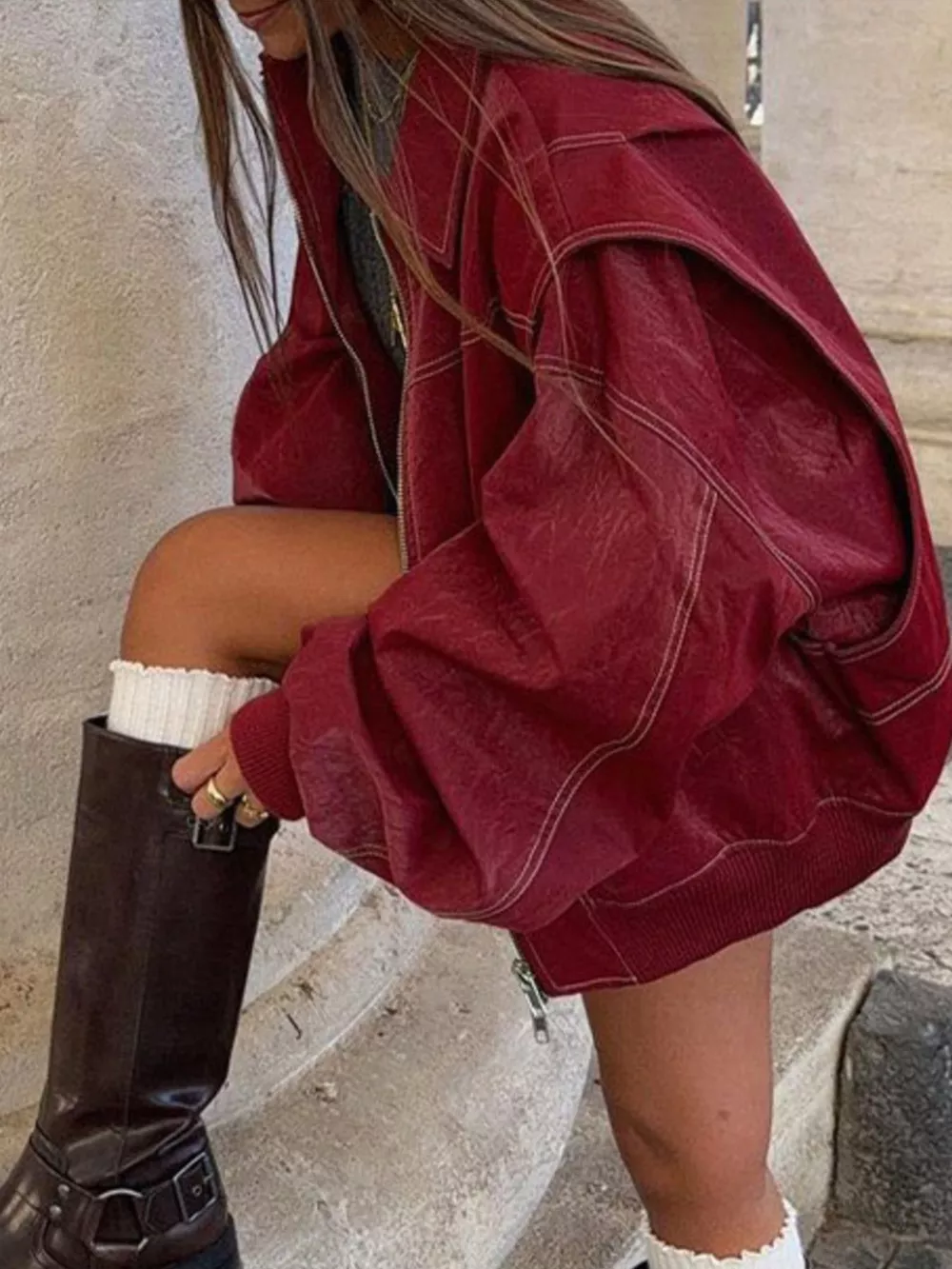 Oversized Zip Up Dropped Shoulder Jacket