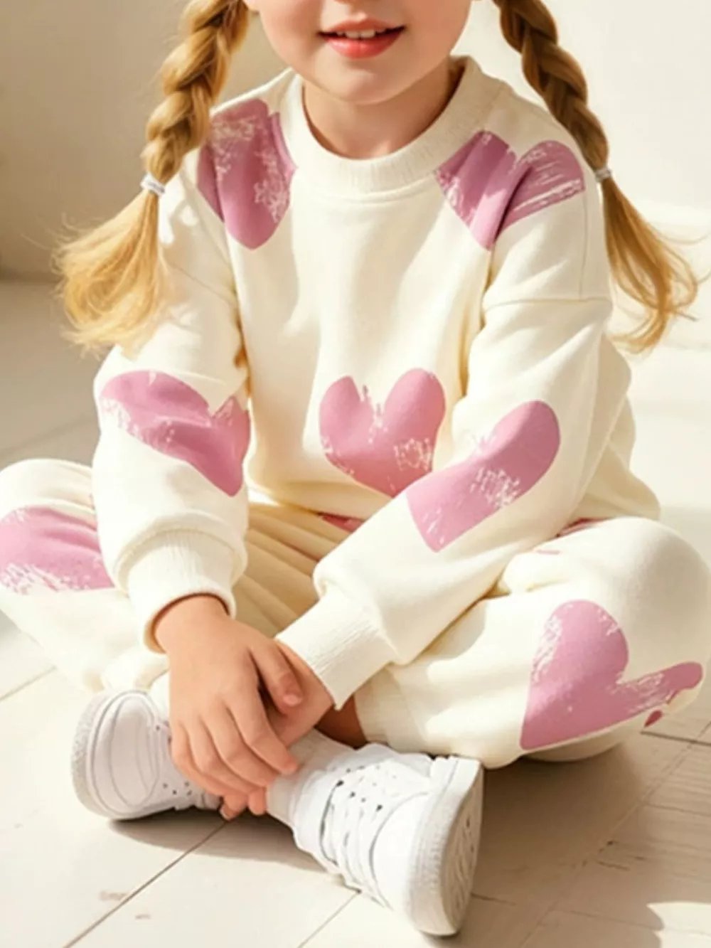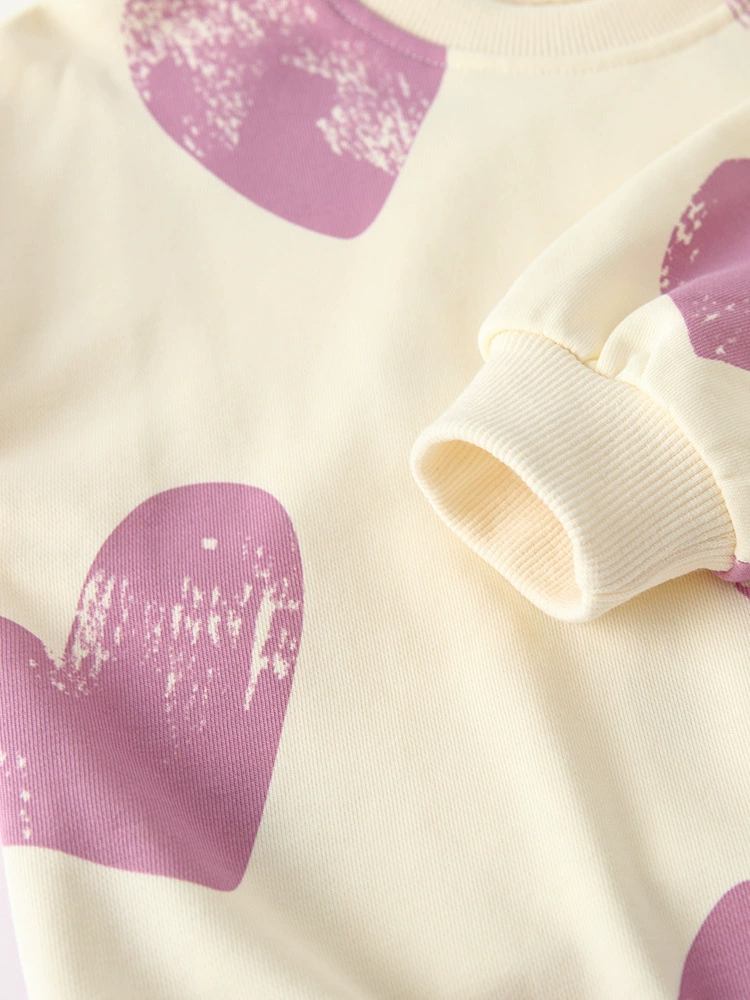 Children's Heart Print Round Neck Top and Pants Set