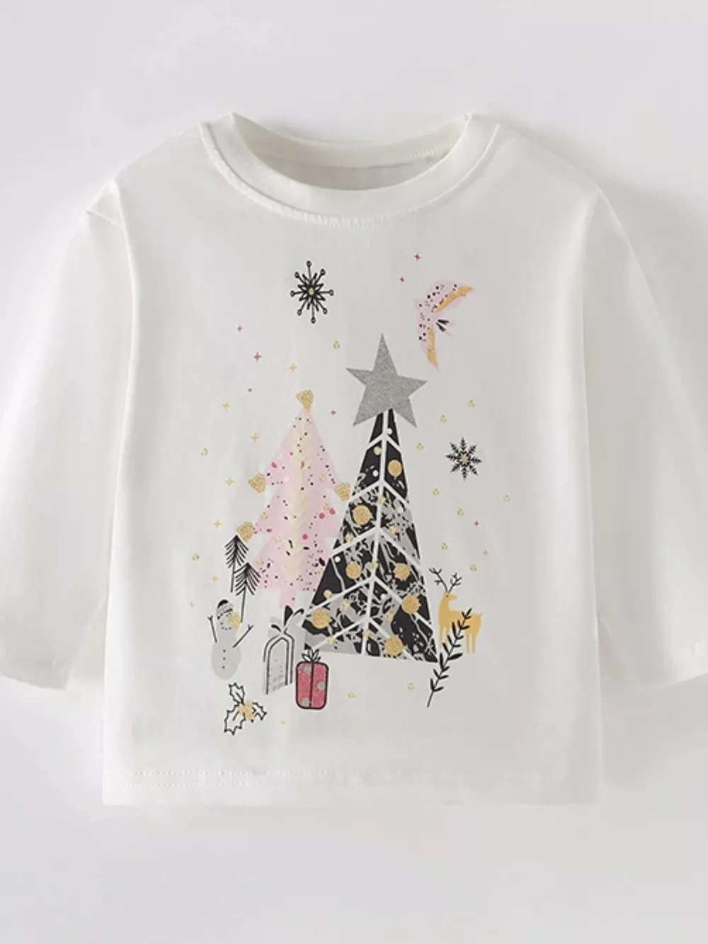 Children's Christmas Tree Graphic Long Sleeve T-Shirt