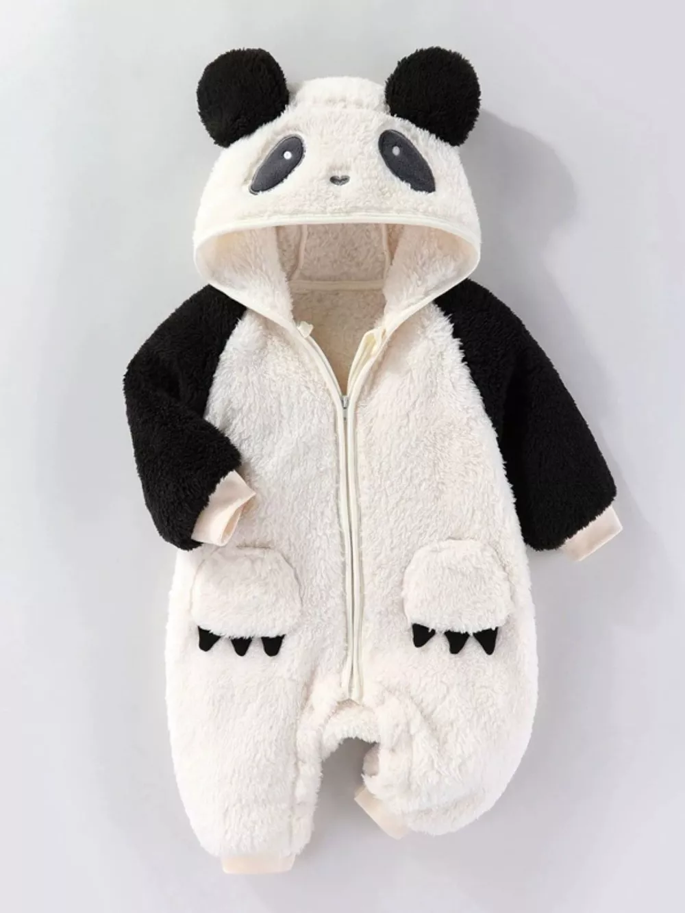 Children's Animal Plush Hooded One-Piece Jumpsuit