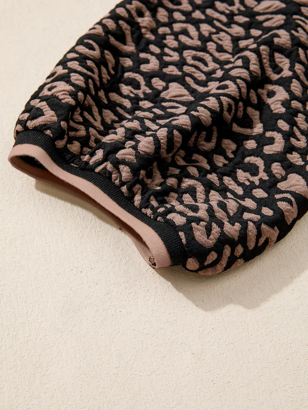 Leopard Print Bubble Sleeve Shift Mini Dress