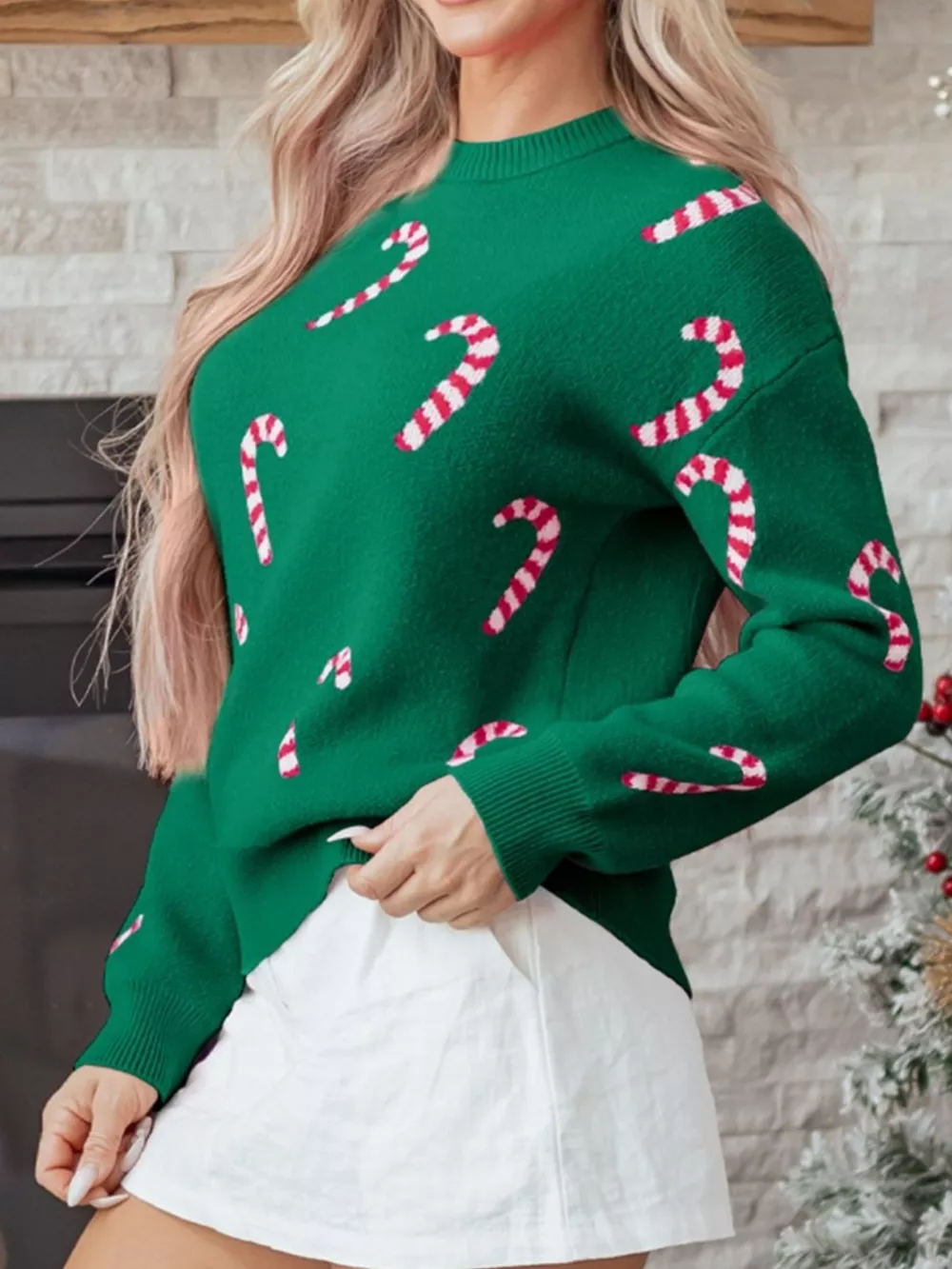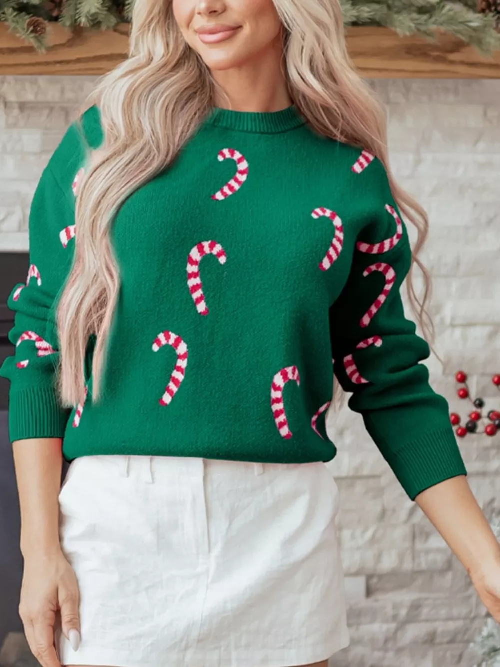 Christmas Candy Cane Holiday Drop Shoulder Sweater