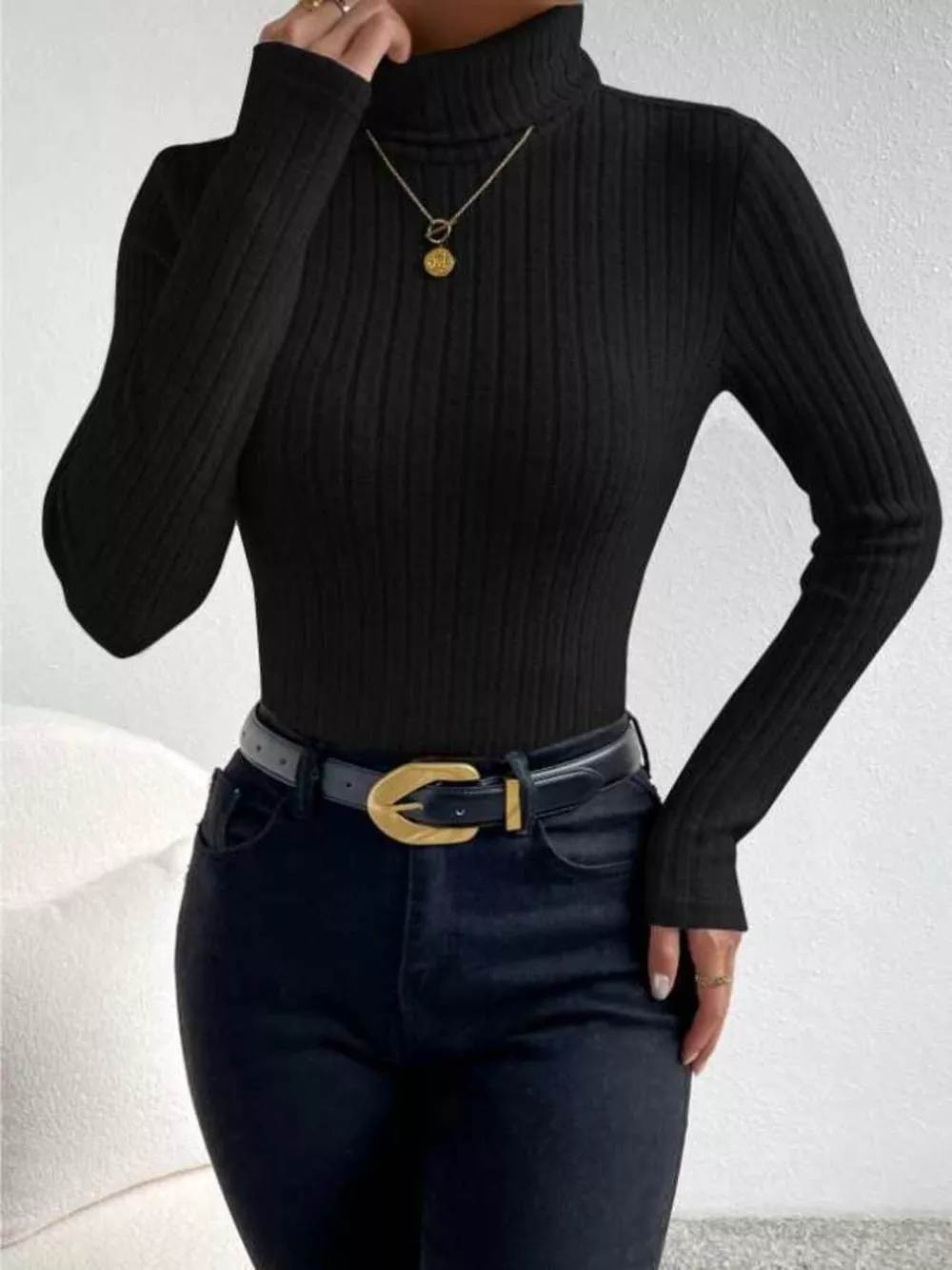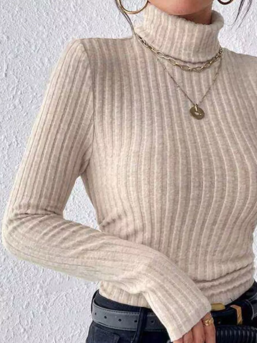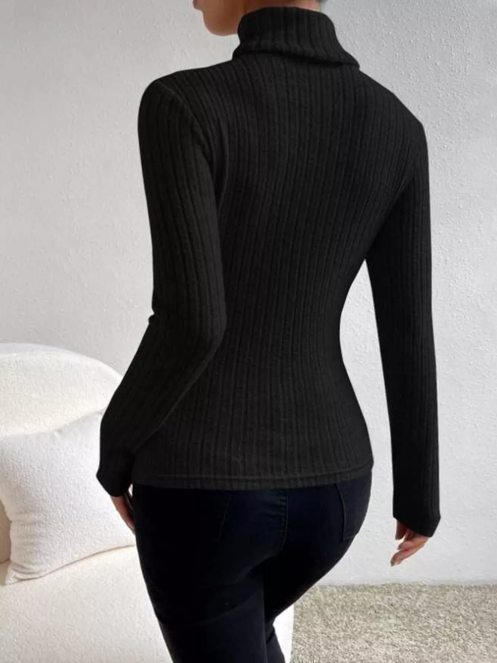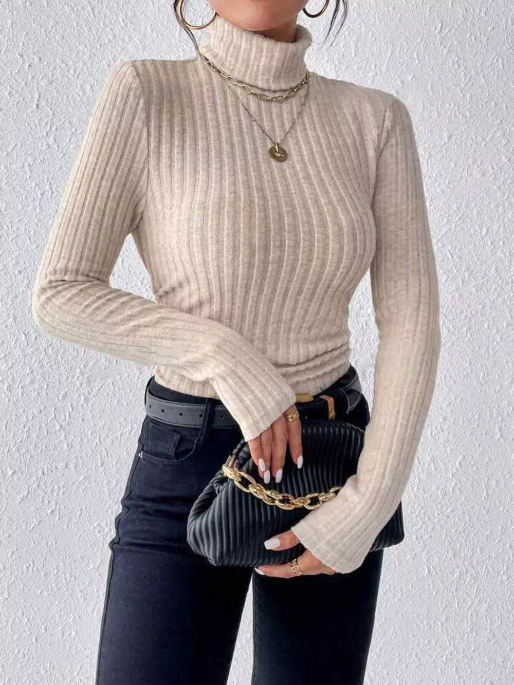 Ribbed Turtleneck Long Sleeve T-Shirt