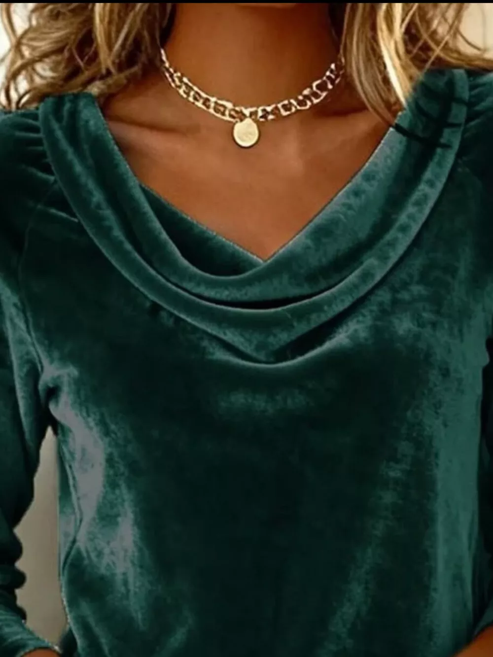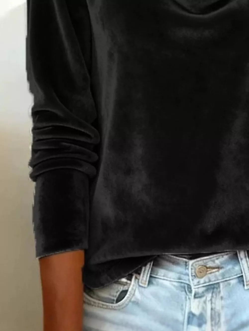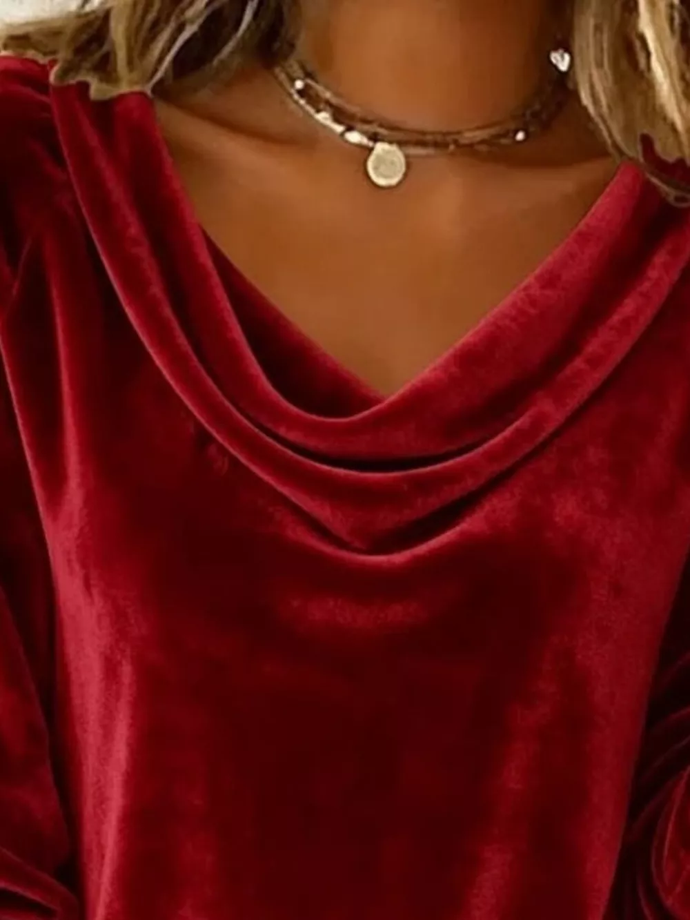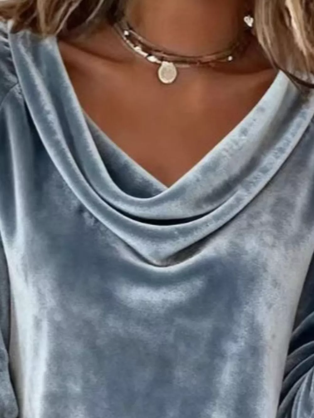 Velvet Cowl Neck Long Sleeve T-Shirt
