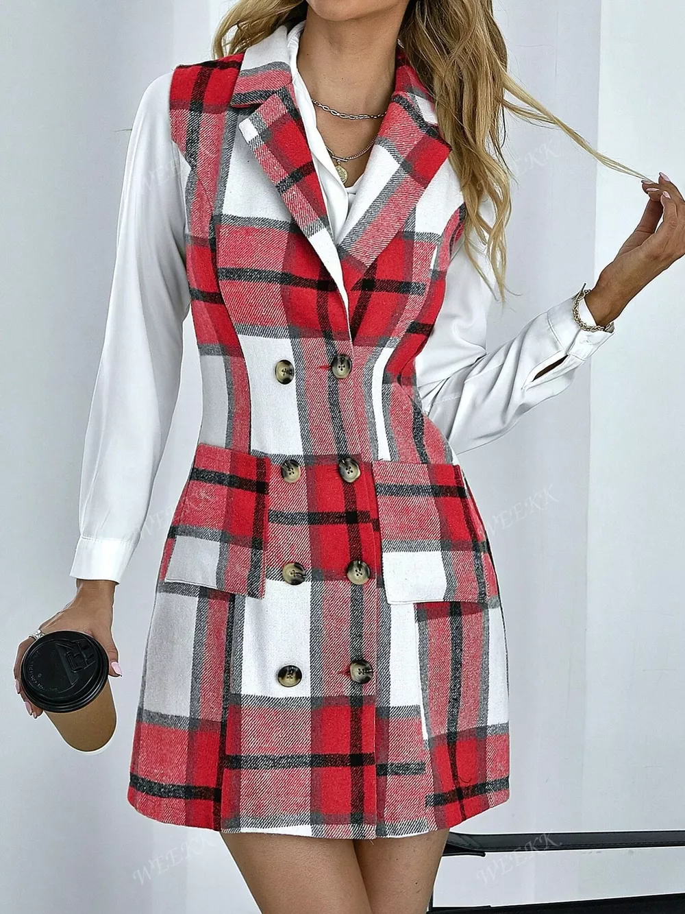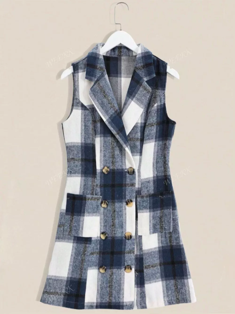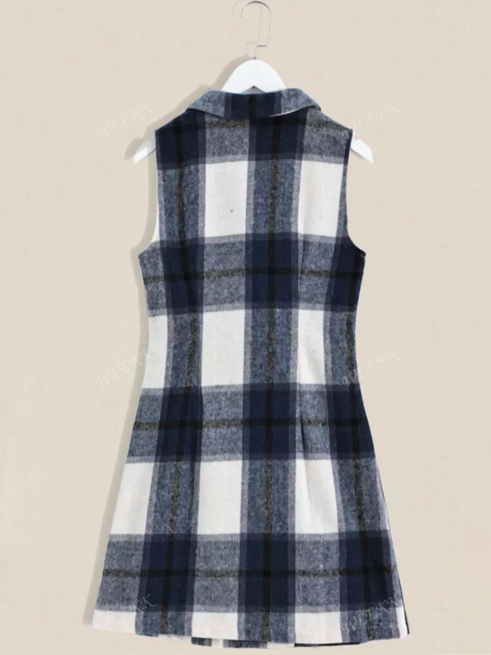 Plaid Double-Breasted Sleeveless Blazer Dress