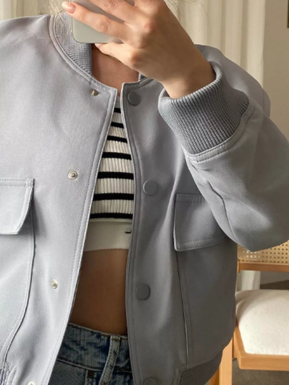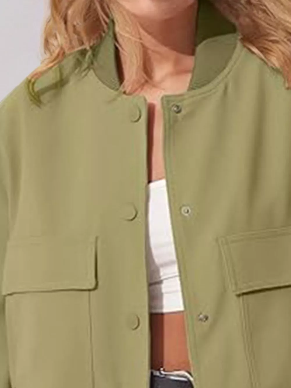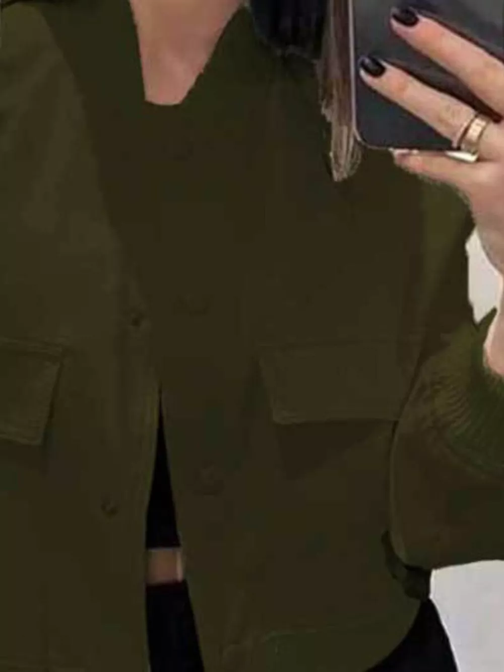 Full Size Snap Down Long Sleeve Jacket Plus Size