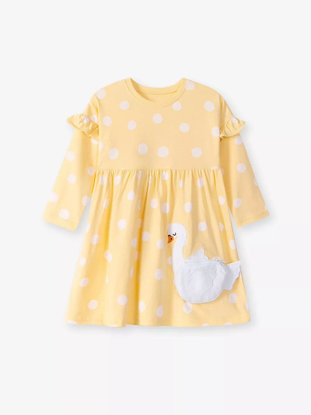 Children's Swan Applique Polka Dot Ruffle Sleeve Dress
