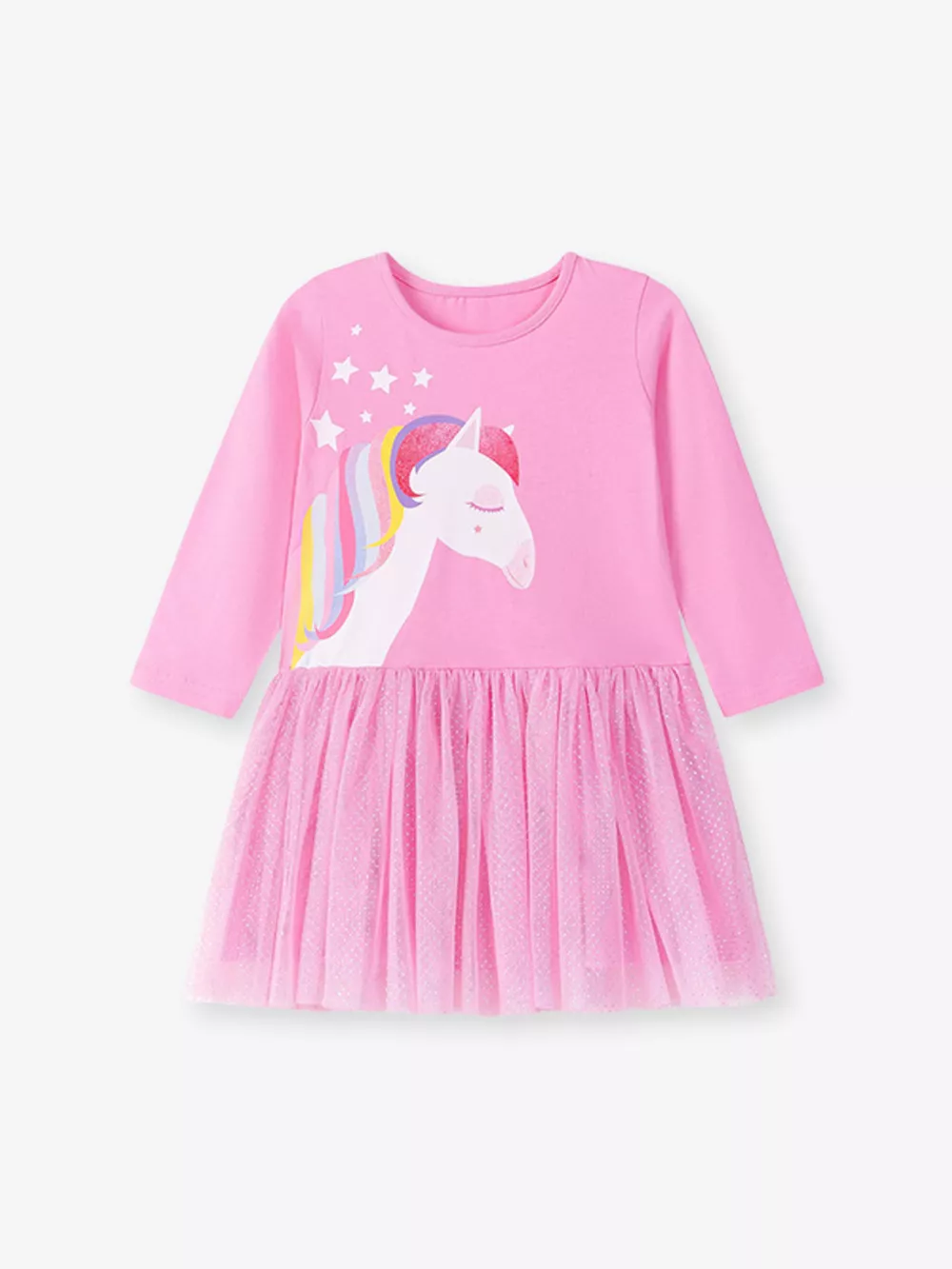 Children's Unicorn Print Long Sleeve Tulle Dress