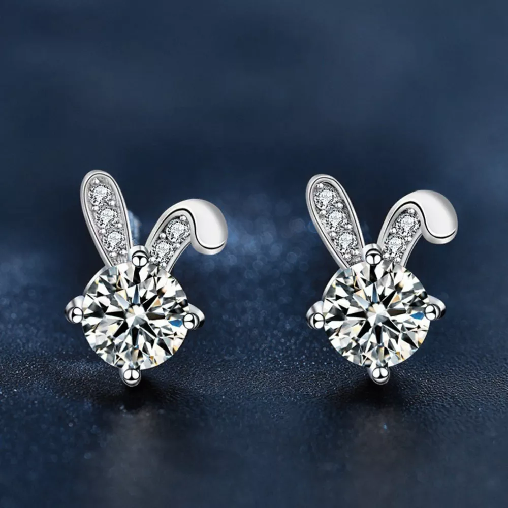 Moissanite 925 Sterling Silver Rabbit Stud Earrings
