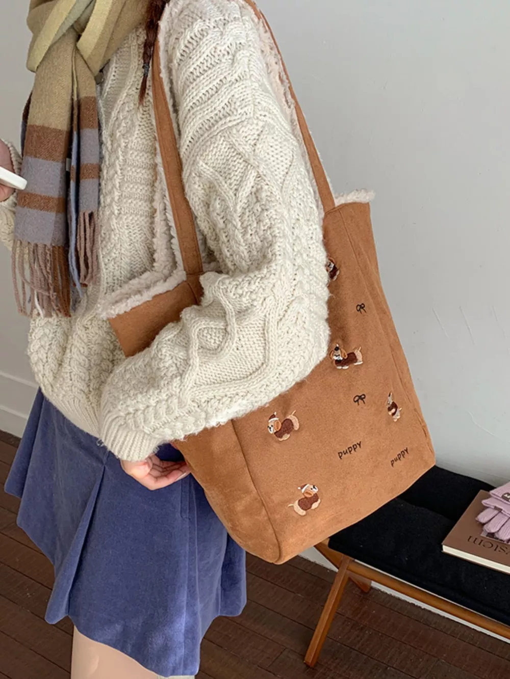 Embroidered Plush Tote Bag