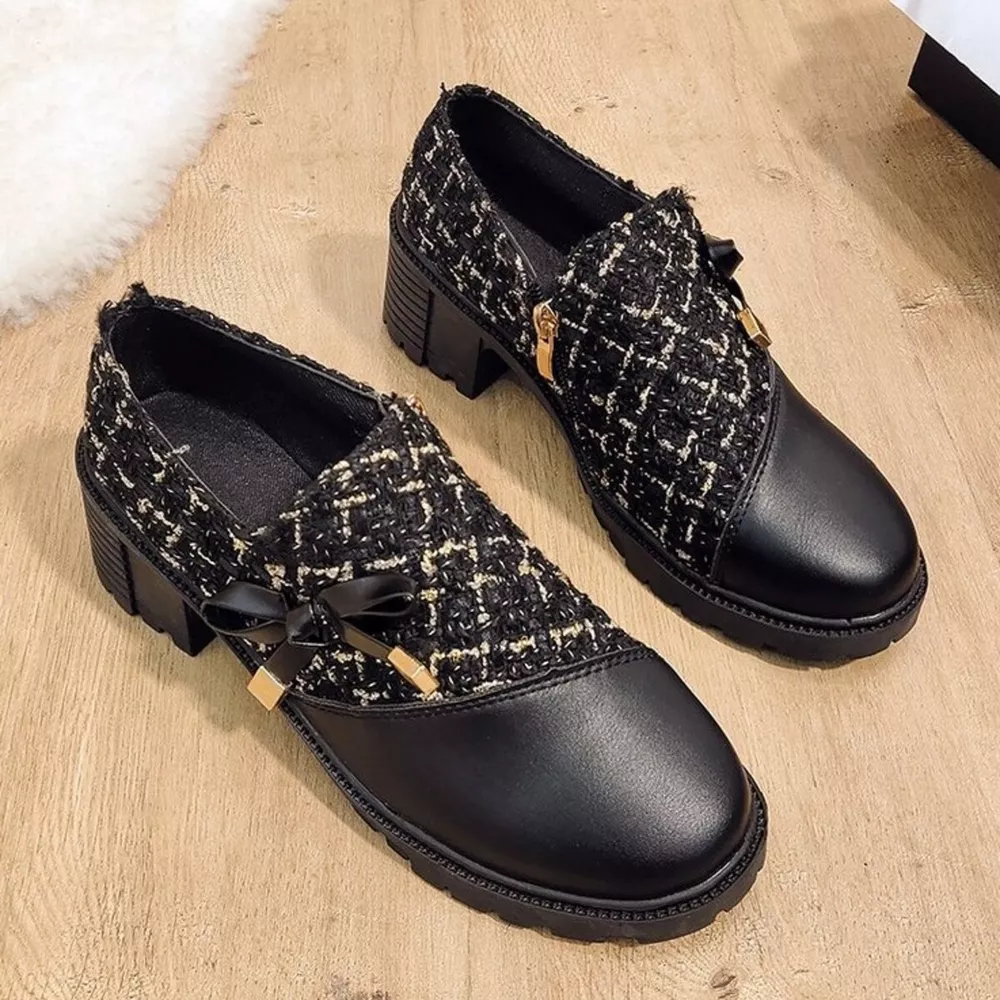 - Heel height:Mid heels